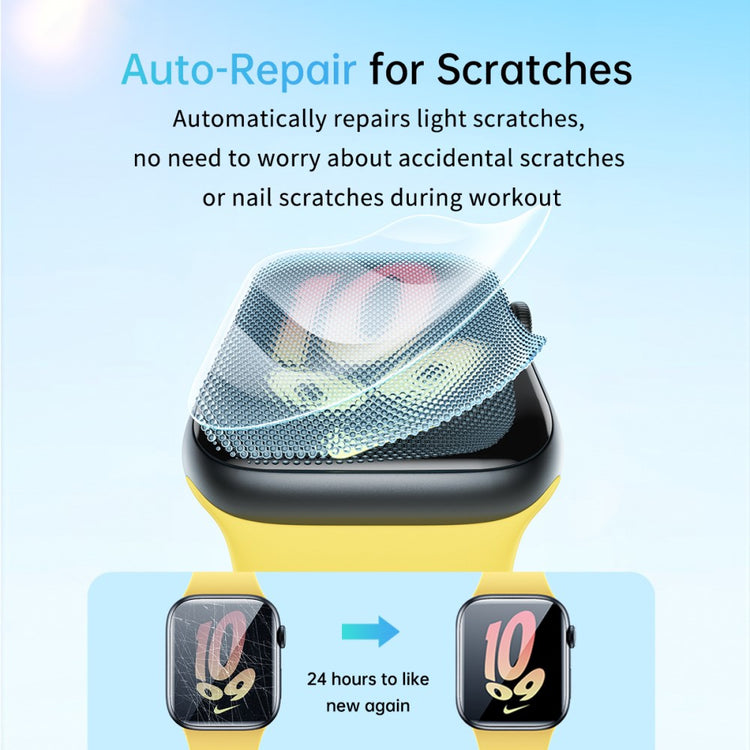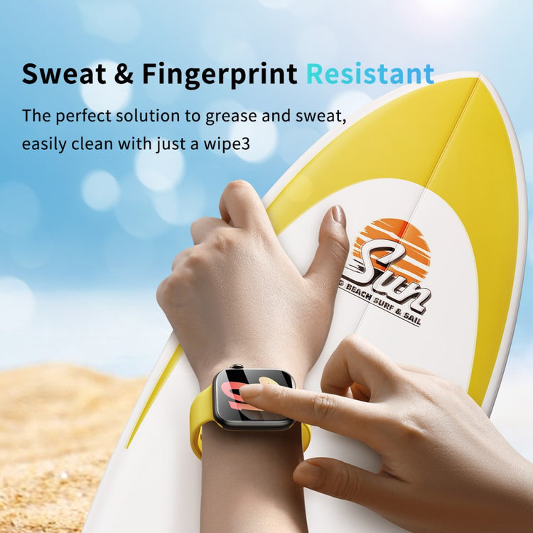 Oppdag etisk beskyttelse til din Apple Watch med denne skjermbeskytteren som automatisk reparerer lette riper. Den har en høy lysgjennomtrengning som sikrer ultra klarhet, samtidig som den er svette- og fingeravtrykkresistent for enkel rengjøring. Med sin ultra-tynne design på 0,15 mm sørger den for rask respons på berøringer og gir full skjermdekning uten bretter eller svarte kanter.