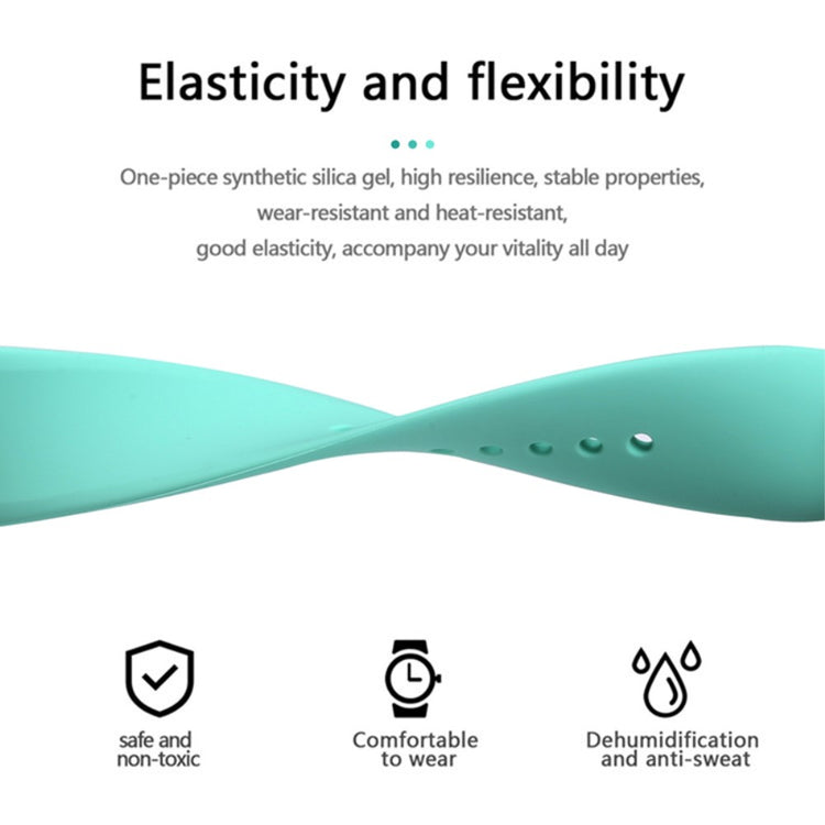 Laget av miljøvennlig silikonmateriale, er denne remmen vanntett og svettebestandig, og tåler slitasje. Med et design med dobbeltknappspenne er størrelsen enkel å justere, og remmen er myk og behagelig å ha på.