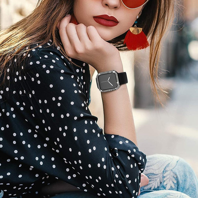 Dette dekselet med integrert skjermbeskytter gir din Apple Watch et elegant og raffinert utseende, samtidig som den beskyttes mot riper og støt. Dekselet er dekorert med glitrende rhinestones som gir klokken et sofistikert preg.