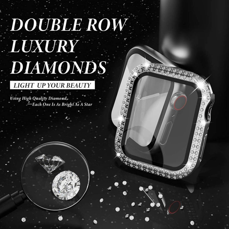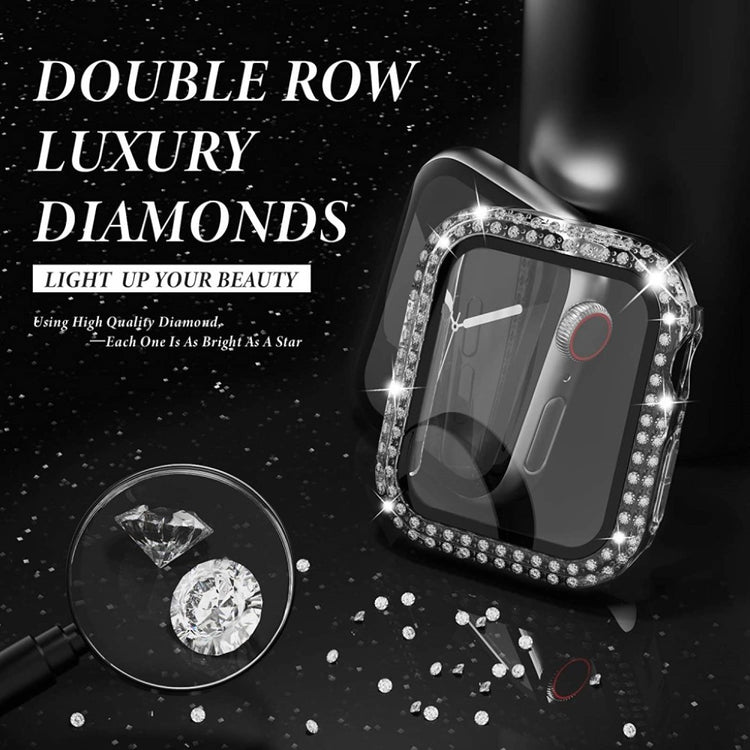Rhinestone dekorert klokkeveske med herdet glass skjermbeskytter for Apple Watch Series 4/5/6 44mm/SE 44mm/SE (2022) gir et stilfullt og delikat utseende. Presise utskjæringer sikrer ubegrenset bruk, samtidig som den gir full beskyttelse mot riper og kollisjoner. Enkel å installere og fjerne, den kombinerer stil med funksjonalitet.