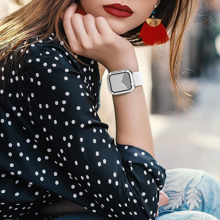 Kjøp vårt Rhinestone Dekor Smartklokke Deksel med herdet glass skjermbeskytter for Apple Watch Series 4 / 5 / 6 44mm / SE 44mm / SE (2022) 44mm, og gi klokken din et elegant løft! Dette dekselet er dekorert med glitrende rhinestones som tilfører en unik stil og raffinert preg til klokken din. Med presise utskjæringer sikrer vi at du kan bruke alle funksjoner uten hindringer. Dekselet gir en fullstendig beskyttelse mot riper og kollisjoner, noe som forlenger levetiden til klokken din. Installasjonen er enkel, og du kan lett ta det av igjen ved behov. Gi klokken din den beskyttelsen og stilen den fortjener med vårt fantastiske dekselet!