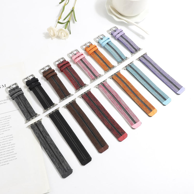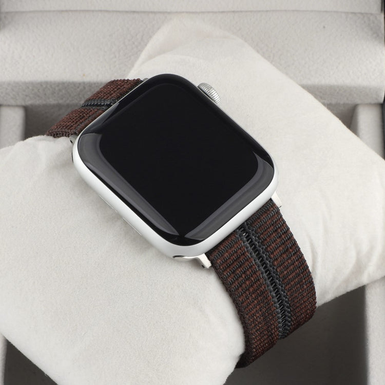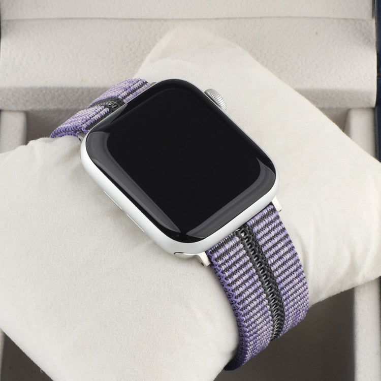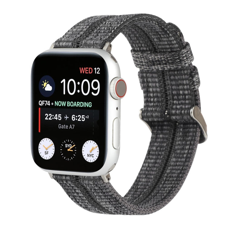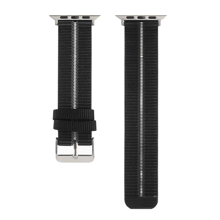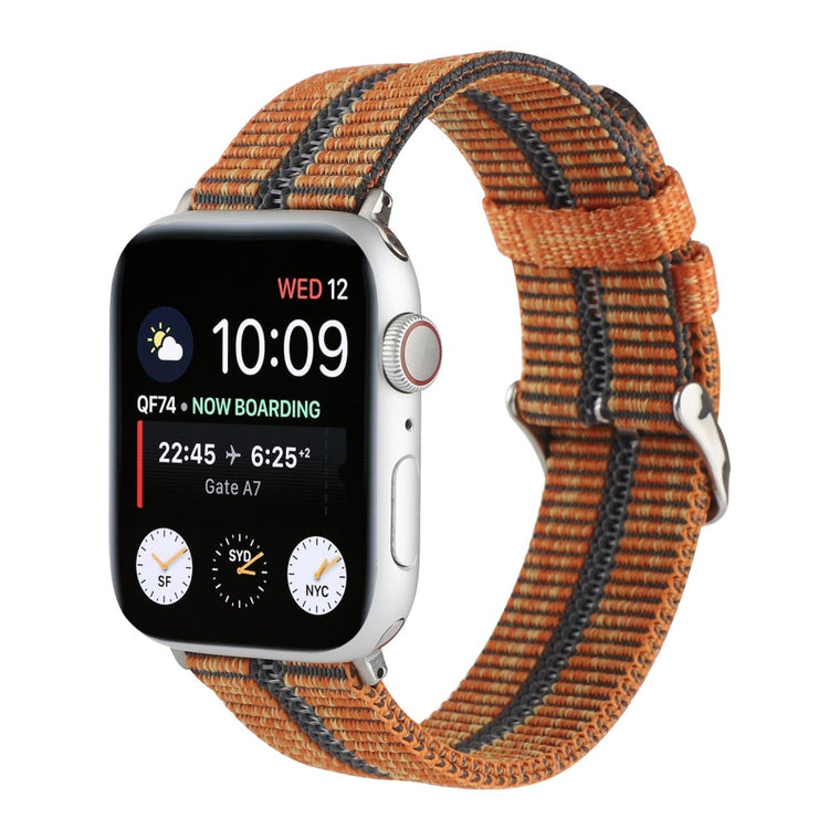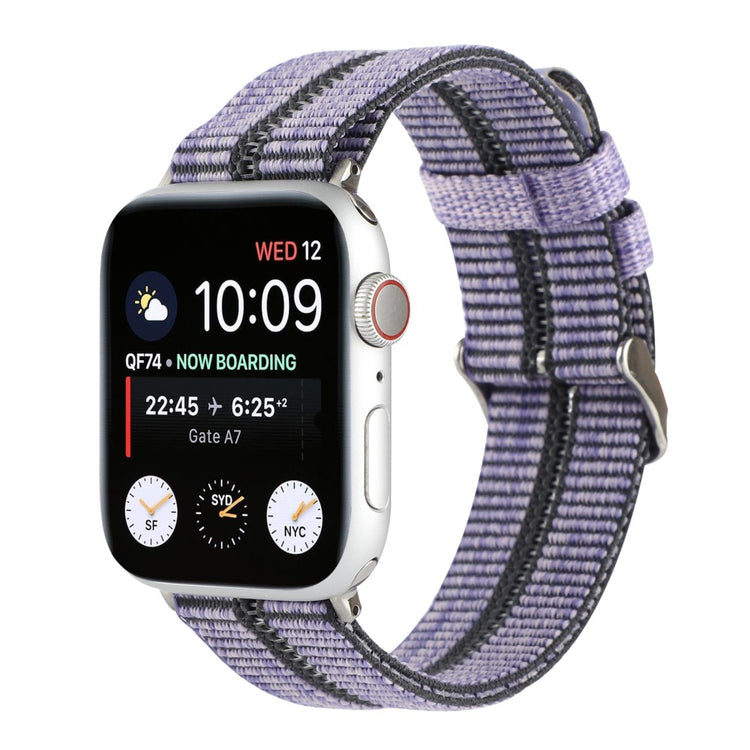 Denne stilige og komfortable sportsreimen til Apple Watch er laget av høy kvalitets nylon. Med sitt flettede stripemønster og en rad med hull, gir den et moderne og sporty uttrykk. Den solide metallspennen sørger for en sikker og justerbar passform.