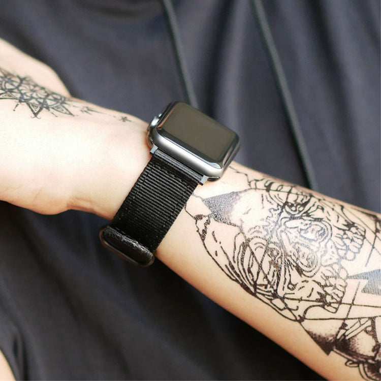 Oppgrader din Apple Watch med denne stilige og komfortable reimen i vevd nylon. Den slitesterke nylonkonstruksjonen sikrer langvarig bruk, samtidig som det pustende materialet gir optimal komfort. Den unike vevde teksturen gir et sofistikert preg, og det brede utvalget av farger lar deg matche din personlige stil. Perfekt erstatning for din gamle, slitte reim.