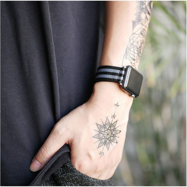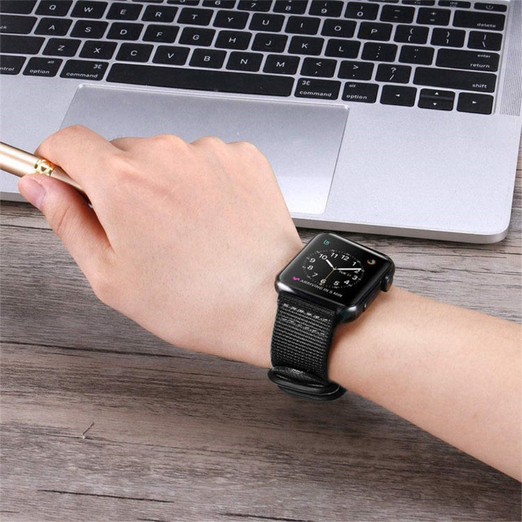 Er du på utkikk etter en ny klokkerem til din Apple Watch? Vårt vævet nylon klokkebånd er det perfekte valget for deg! Laget av holdbart nylon, gir det en pustende og komfortabel opplevelse, selv ved langvarig bruk. Den distinkte vævde teksturen tilfører en moderne og stilig dimensjon til klokken din, som gjør at du kan skille deg ut i mengden. Med flere fargealternativer tilgjengelig, kan du enkelt finne en rem som passer din personlige stil. Dette klokkeremmet er en ideell utskifting for din gamle eller ødelagte rem, og dens spesifikasjoner gjør den egnet for håndleddsomkrets fra 5.4 til 7.5 tommer. Vei kun 30 gram, er det lett og behagelig å ha på. Oppgrader stilen din i dag med vårt elegante og funksjonelle klokkebånd!