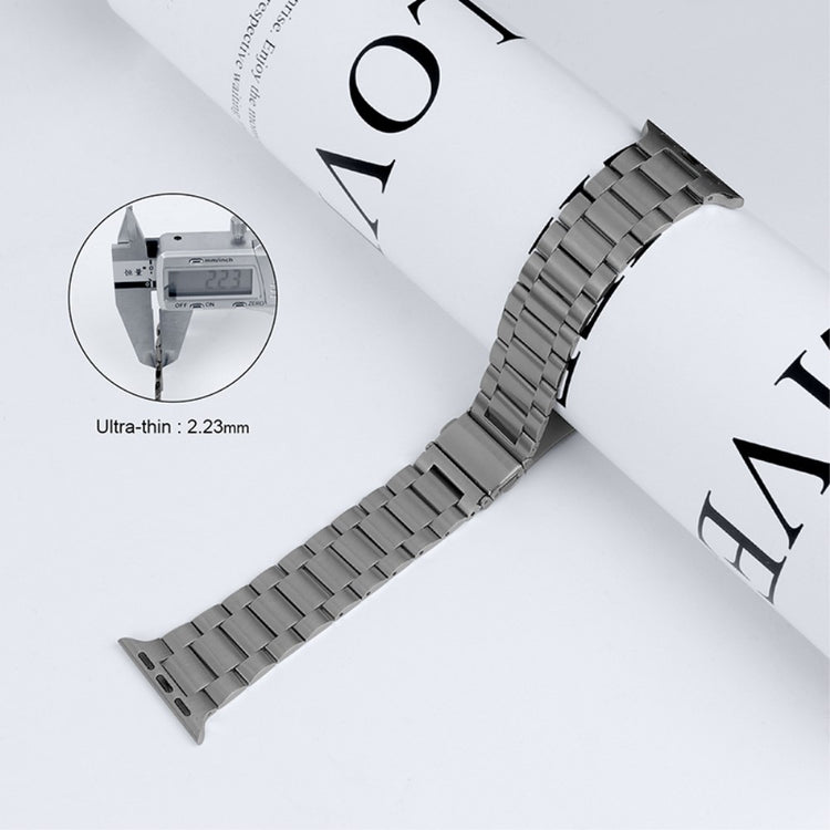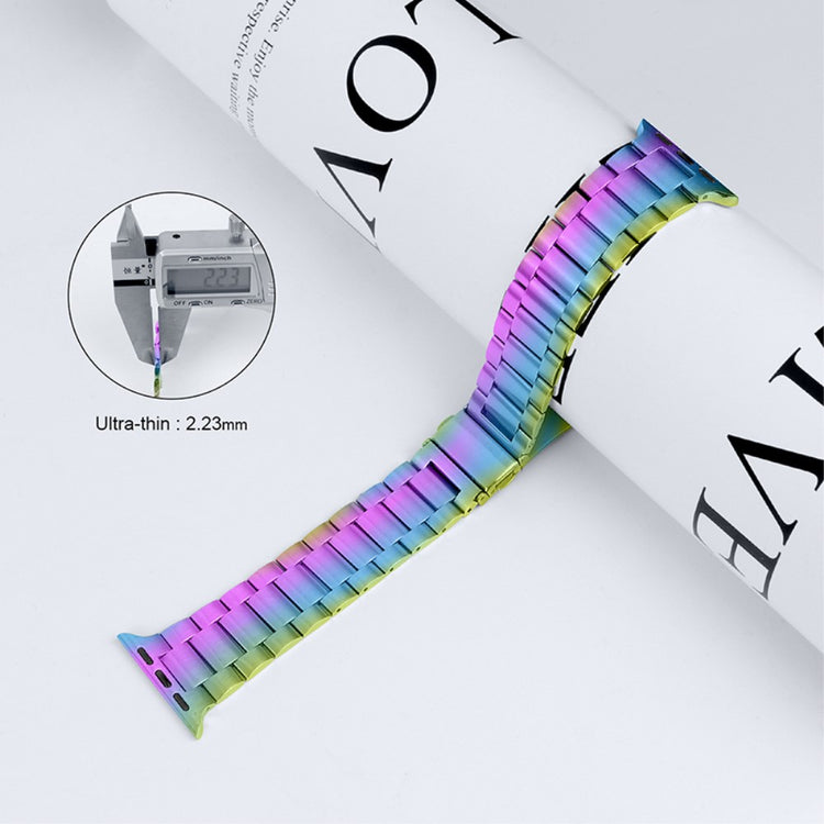 Oppgrader Apple Watch-en din med denne lekre og slitesterke lenken i rustfritt stål. Med et vakkert design og dobbel låsemekanisme gir denne lenken et elegant og unikt utseende.
