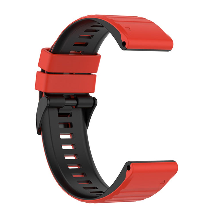 Denne slitesterke silikonremmen er det perfekte tilbehøret for din Garmin-smartklokke. Remmen er laget av miljøvennlig silikon som er vanntett og svettebestandig, og tåler slitasje godt. Det tofarget designet med en klassisk, sort spenne gir et enkelt og stilig utseende.