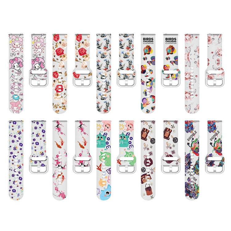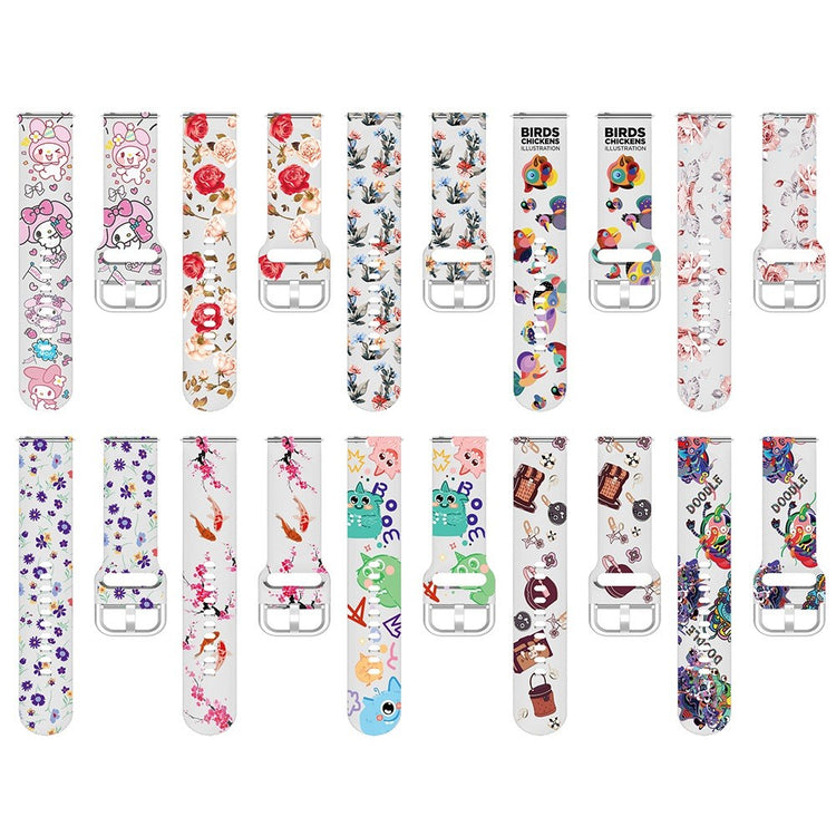 Oppgrader stilen din med et nytt klokkearmbånd til din smartklokke! Dette armbåndet er laget av premium silikon, noe som gjør det slitesterkt og komfortabelt å ha på seg hele dagen. Den unike og vakre trykte designen gir deg muligheten til å personliggjøre klokken din og tilpasse den til forskjellige fasjonable stiler. Med en aluminiumsspenne som holder armbåndet sikkert på plass, kan du være trygg på at klokken din sitter godt. Armbåndet har også 10 justerbare hull, noe som gir deg mulighet til å tilpasse størrelsen til håndleddet ditt (160-220 mm). Dette er en idéell erstatning for et gammelt eller ødelagt armbånd, og sikrer at din Samsung Galaxy Watch, Huawei Watch, Garmin eller annen kompatibel smartklokke ser bra ut og føles bra hele dagen!