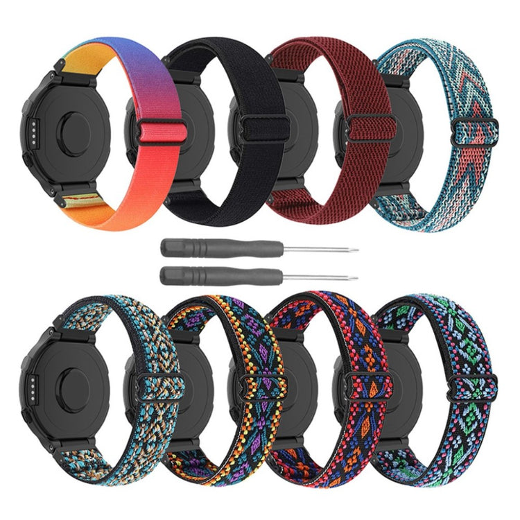 Justerbart elastisk nylon klokkerem med skruenøkler for Garmin Forerunner 735xt/220/230/235/620/630 er laget av høykvalitets nylonmateriale som er slitesterkt. Den elastiske nylonremmen gir uovertruffen komfort og lar deg enkelt tilpasse lengden for en perfekt passform. Denne klokkeremen er en ideell erstatning for din gamle, brukte rem og er både enkel å installere og fjerne.
