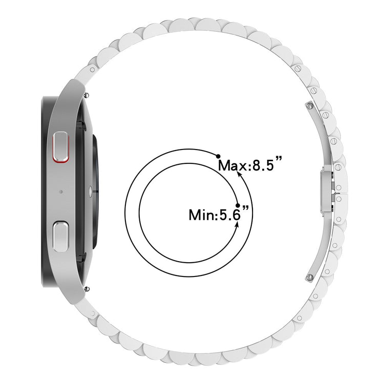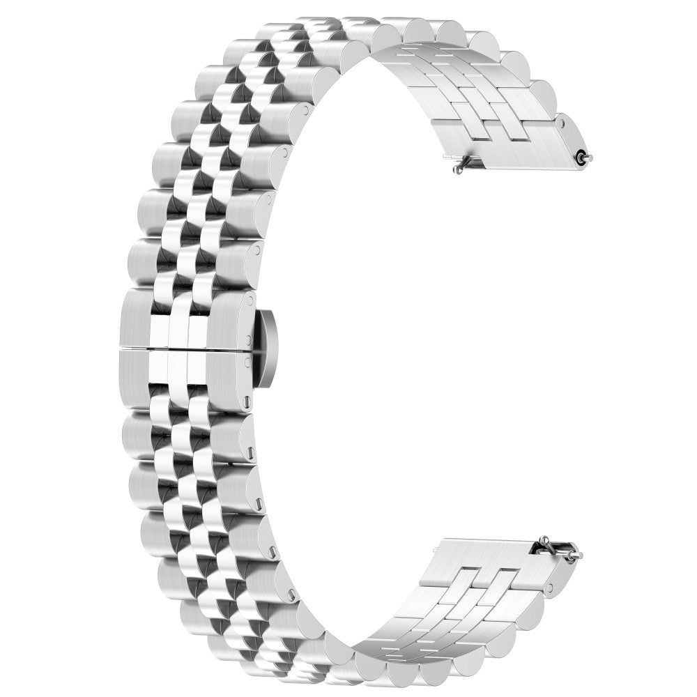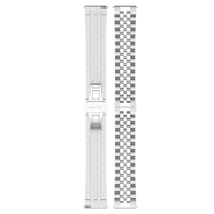 Oppgrader ditt smartklokke med vårt elegante rem i rustfritt stål designet for Huawei Watch 4 Pro, Huawei Watch 4 og Garmin Forerunner 265, 255 samt Vivoactive 4. Denne klokkenremmen kombinerer høy kvalitet med stil, noe som gjør den til det perfekte tilbehøret for både hverdagsbruk og spesielle anledninger. Hver rem er laget av erfarne håndverkere som sikrer en hard, glatt og komfortabel opplevelse på håndleddet. Det foldbare spennen gir ekstra beskyttelse til din klokke, og er tryggere enn mange andre lukkingssystemer. Vi har tatt hensyn til hvert enkelt detalj i både håndverk, design og estetikk, slik at du kan føle deg sikker og stilfull uansett anledning. Enten du skal på datofest, møte, reise, forretningsarrangement eller sosiale sammenkomster, er denne klokkenremmen et perfekt valg for deg som ønsker å utfylle antrekket med et sofistikert preg. Med en størrelse på 179 mm og en bredde på 22 mm, passer den de fleste håndledd mellom 5,6-8,5 tommer.