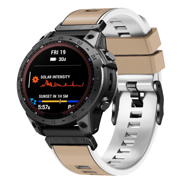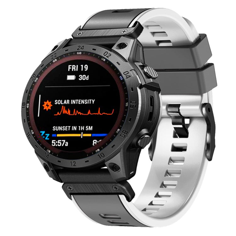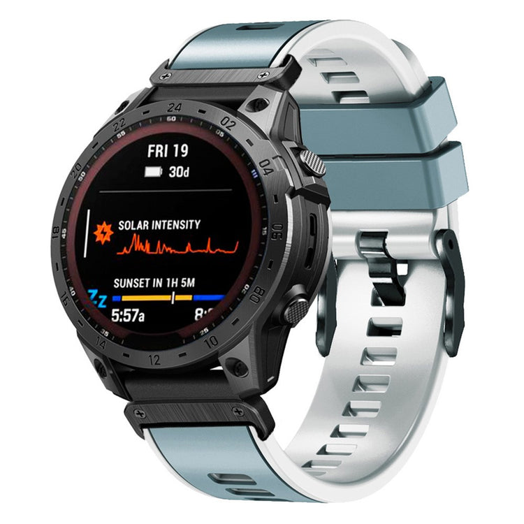 Denne slitesterke klokkeremmen er laget av miljøvennlig silikon som er både vanntett og svetteavvisende. Den tåler slitasje og er perfekt for en aktiv livsstil. Med sitt stilrene tofarget design gir den klokken din et moderne preg.