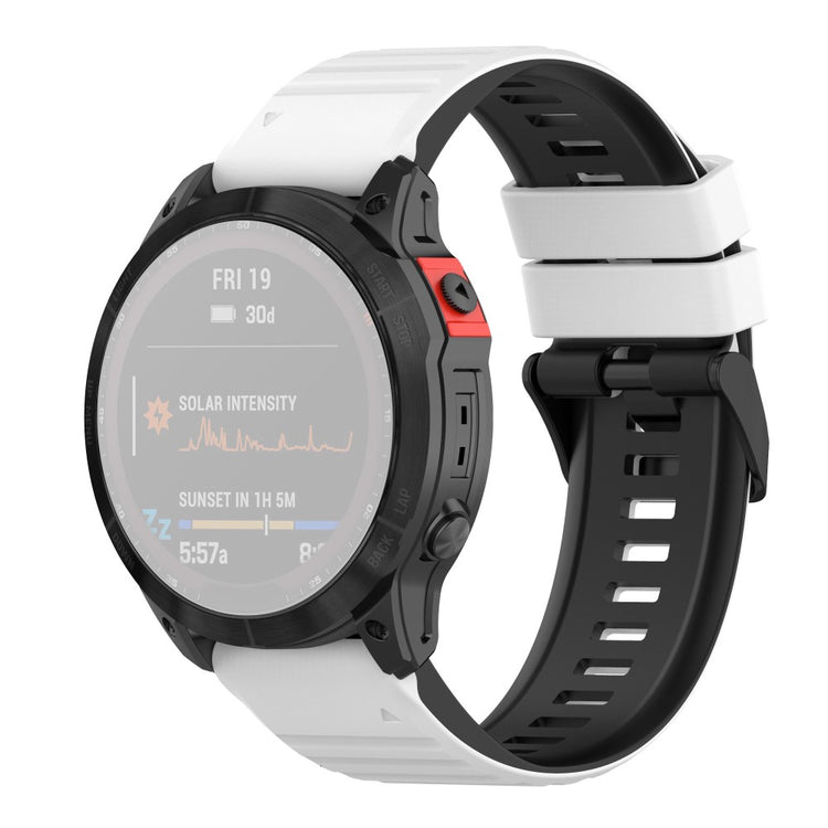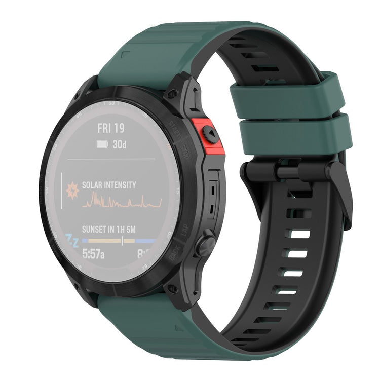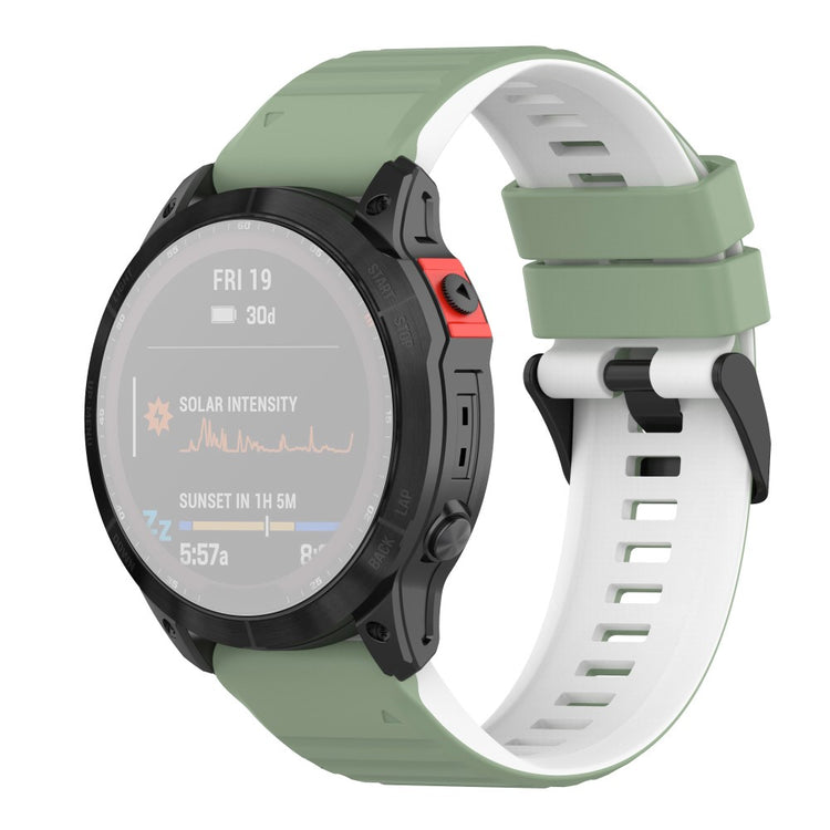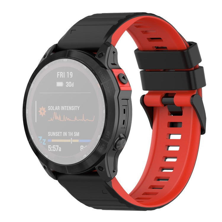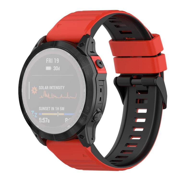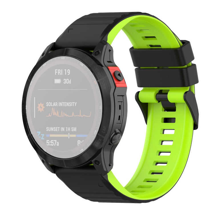 Erstatningsrem til Garmin Fenix 6 GPS laget av miljøvennlig silikon som er vanntett og svettebestandig. Den har et justerbart design for optimal passform og er både myk og komfortabel å bruke. Med flere fargealternativer kan du enkelt tilpasse stilen din med denne praktiske remmen.