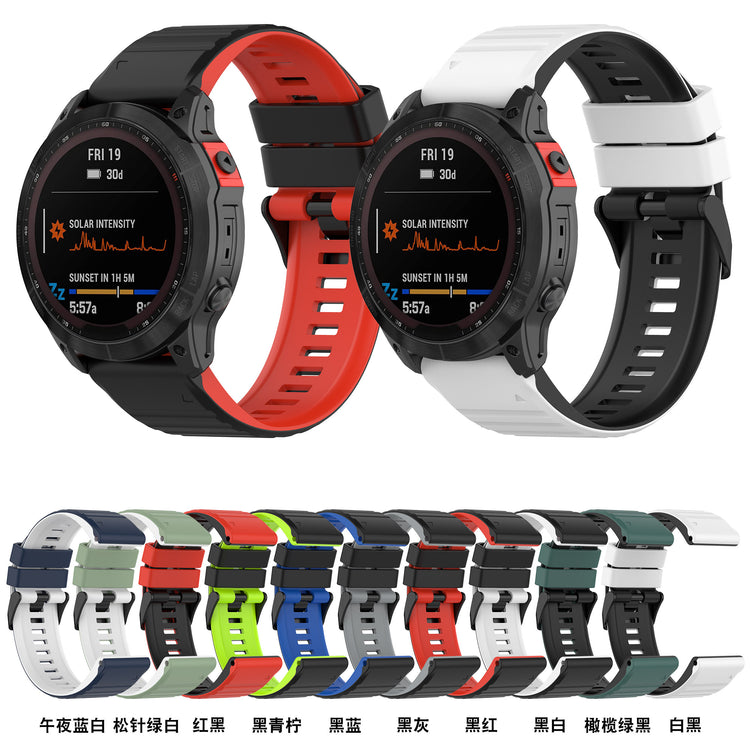 Oppgrader din Garmin Fenix 6X GPS med vårt 26mm erstatningsarmbånd i økovenlig silikonmateriale. Dette armbåndet er ikke bare vanntett og svettebestandig, men det er også motstandsdyktig mot slitasje, noe som gjør det til det perfekte valget for aktive brukere. Med flere fargealternativer kan du enkelt tilpasse stilen din, samtidig som den justerbare størrelsen gir en myk og komfortabel passform uansett hvilket håndledd du har. Hvis du har et gammelt eller defekt armbånd, er dette den ideelle erstatningen for å gi klokken din nytt liv. Med en netto vekt på kun 24,5g er det lett og behagelig å bære hele dagen. Armbåndet er kompatibelt med flere Garmin-modeller, inkludert Fenix 6X PRO, Fenix 5X, og Fenix 3, så du kan være trygg på at det passer perfekt. Oppgrader nå for å gi klokken din et fresht utseende!
