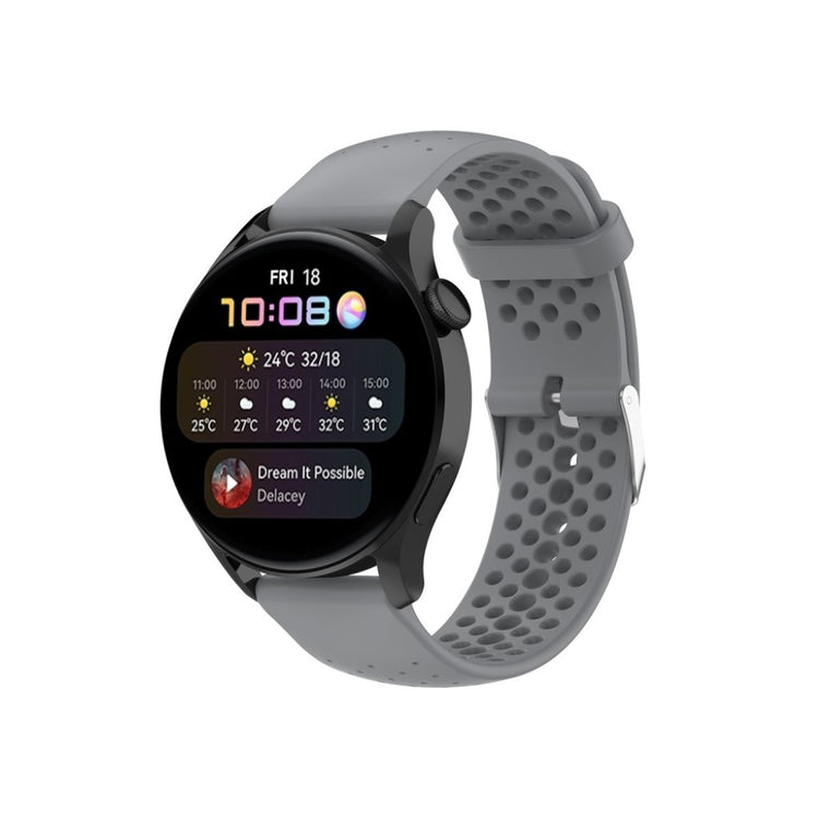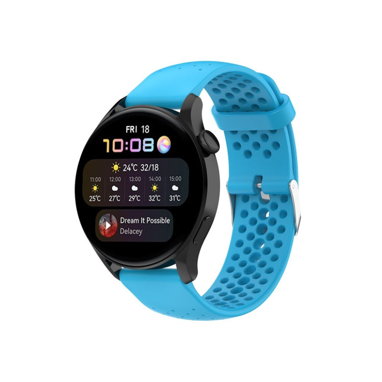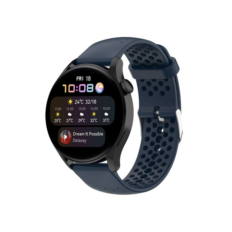 Har du en smartklokke og trenger et nytt armbånd? Vår justerbare og pustende silikonrem er det perfekte valget for deg! Laget av miljøvennlig silikon, er dette armbåndet både slitesterkt og behagelig for daglig bruk. Den smarte designen med flere hull gir bedre luftgjennomstrømning, slik at du kan bruke klokken din komfortabelt, selv under trening. Med et praktisk metallspenne er det enkelt å ta av og på, og du kan enkelt justere størrelsen for en perfekt passform. Dette armbåndet er også et ideelt erstatningsrem for din gamle eller ødelagte klokkerem. Med et utvalg av farger kan du enkelt finne en stil som passer akkurat deg. Gi smartklokken din et nytt liv med dette stilige og funksjonelle armbåndet! Det passer til et bredt utvalg av modeller fra merker som Samsung, Huawei, Amazfit, og Garmin.