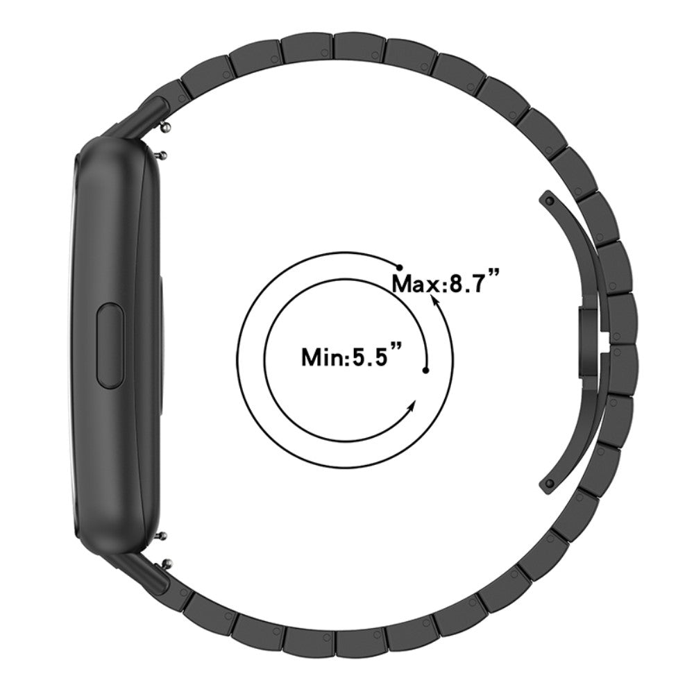 Erstatningsrem til Huawei Band 7 laget av premium stål for luksus, nobility og holdbarhet. Den er utformet med eksklusivt håndverk for en glatt overflate og er komfortabel å ha på. Det unike spennen sikrer at remmen sitter trygt, noe som gjør den perfekt for både hverdagsbruk og formelle anledninger.