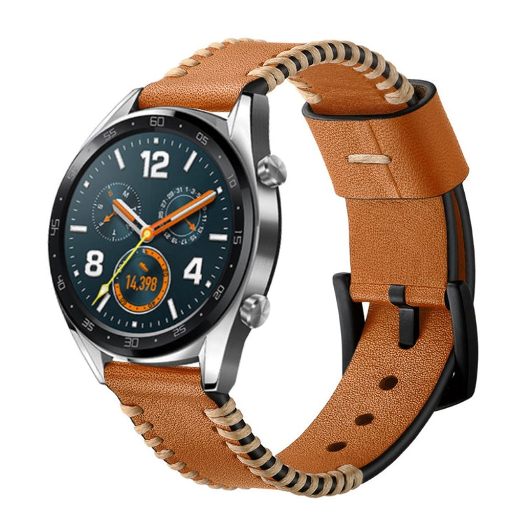Oppgrader smartklokken din med et unikt og stilfullt tilbehør! Med 22mm Ribs Style ekte lær klokkerem, får du en rem laget av høykvalitets topp ekte lær, som gir både mykhet og komfort i hverdagen. Den deilige følelsen av lær mot huden gjør at du kan ha på deg klokken hele dagen uten ubehag. Det exquisite håndverket gir et tidløst design som passer perfekt til enhver anledning, enten du er på jobb eller i fritiden. Den metallspenne lukkingen gjør det enkelt å ta remmen av og på, og de praktiske hullene på remmen gjør det enkelt å justere i henhold til størrelsen din. Dette er den perfekte erstatningen for en gammel eller ødelagt klokkerem, som lar deg forlenge levetiden til smartklokken din. Med dimensjoner på 75mm + 125mm og en bredde på 22mm, er denne remmen kompatibel med flere populære modeller, inkludert Huawei Watch GT og Honor Magic. Gi klokken din et nytt liv med denne stilige og elegante remmen!