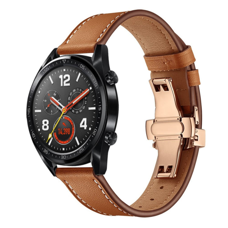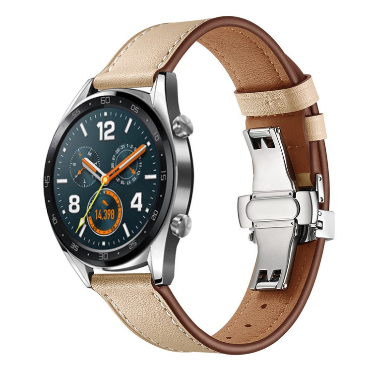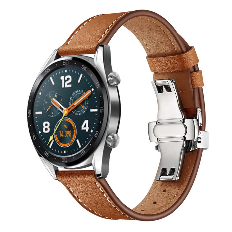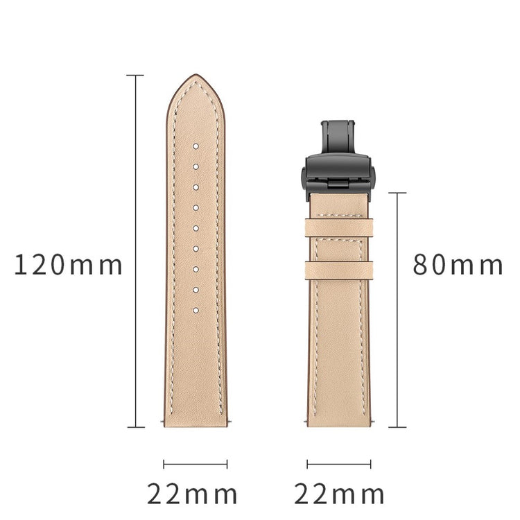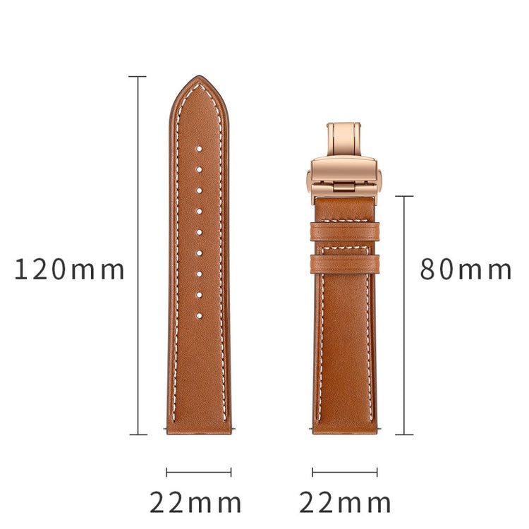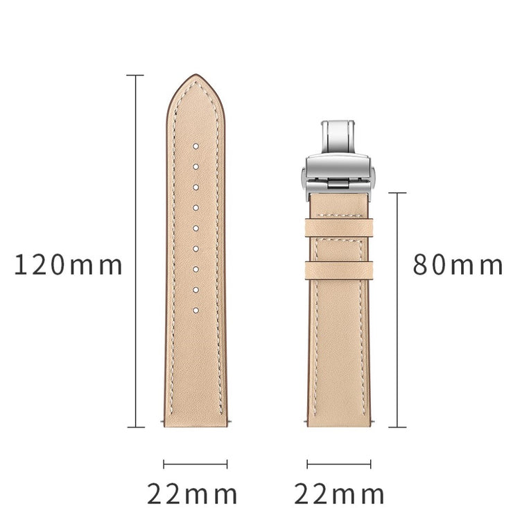 Oppgrader håndleddet ditt med et stilfullt og funksjonelt armbånd i ekte skinn. Dette 22mm erstatningsarmbåndet er laget av høy kvalitet skinn, som gir en myk og holdbar følelse. Med holdbare spenner kan du enkelt ta på og av armbåndet uten problemer. De praktiske hullene gjør det enkelt å justere armbåndet etter din størrelse, slik at du alltid får en perfekt passform. Dette er den ideelle erstatningen for et gammelt eller ødelagt armbånd, og gir liv til klokken din igjen. Med en lengde på 80mm + 120mm og en bredde på 22mm, er dette armbåndet kompatibelt med en rekke populære smartklokker, slik som Huawei Watch GT, Samsung Gear og Fossil Q. Gi klokken din et nytt utseende og komfort ved å velge dette stilige armbåndet!