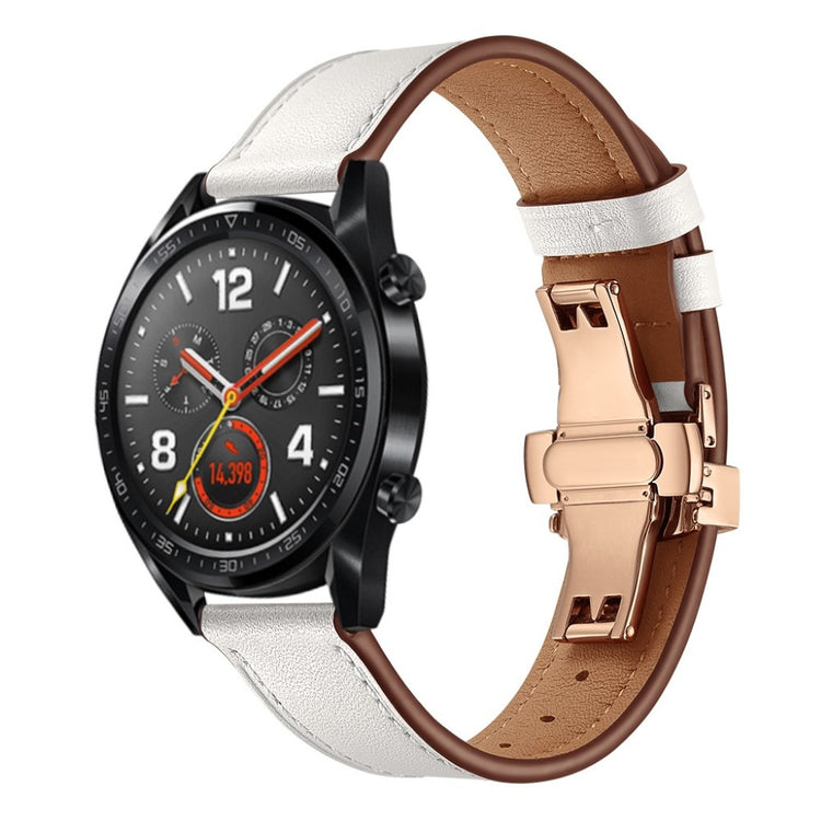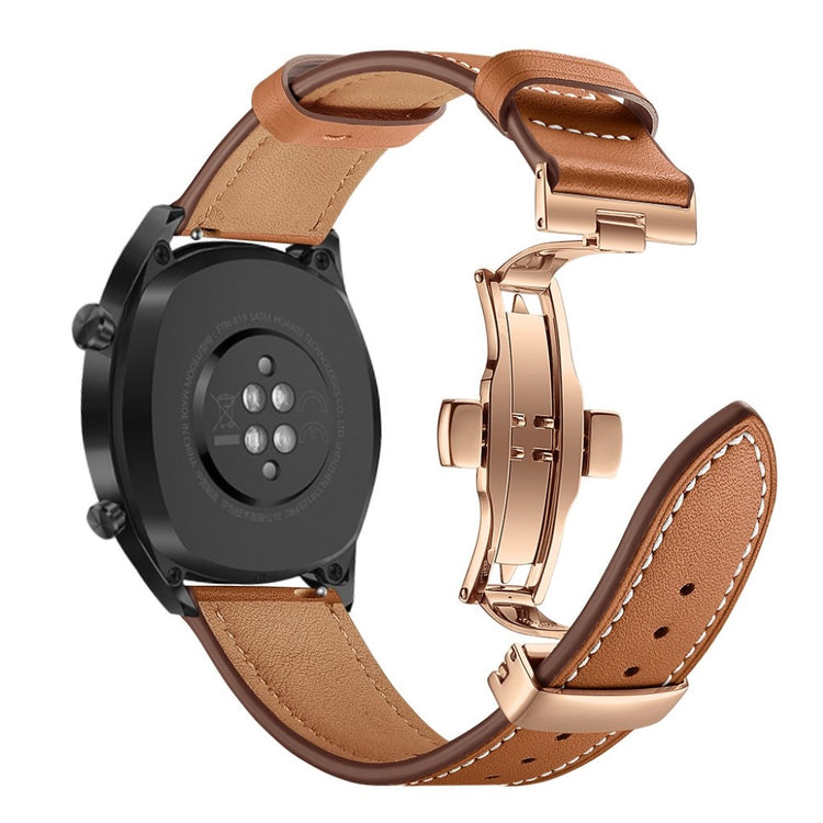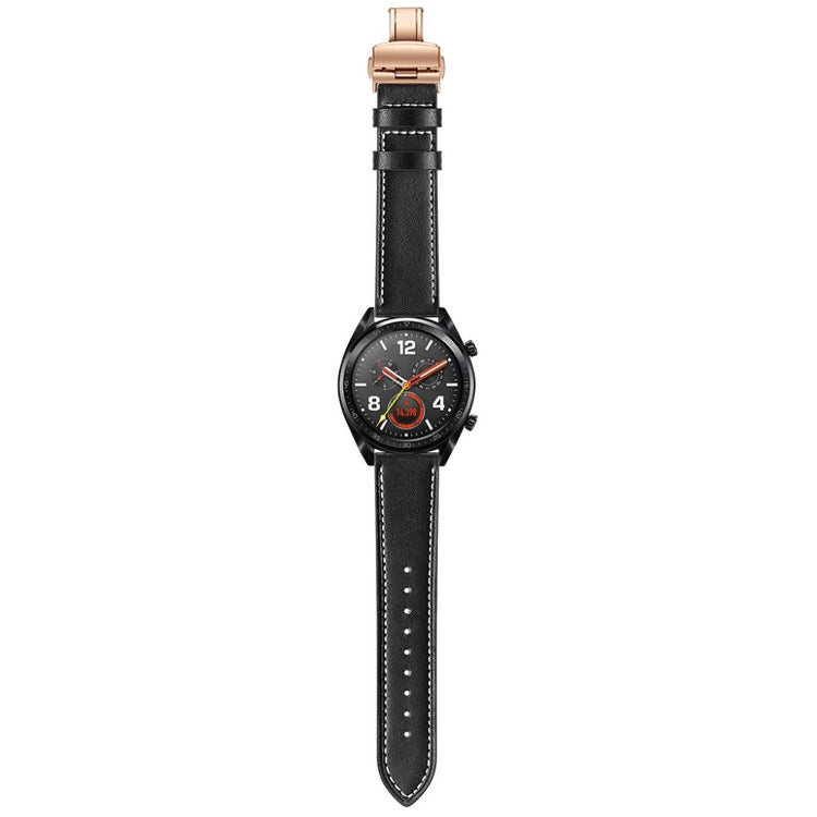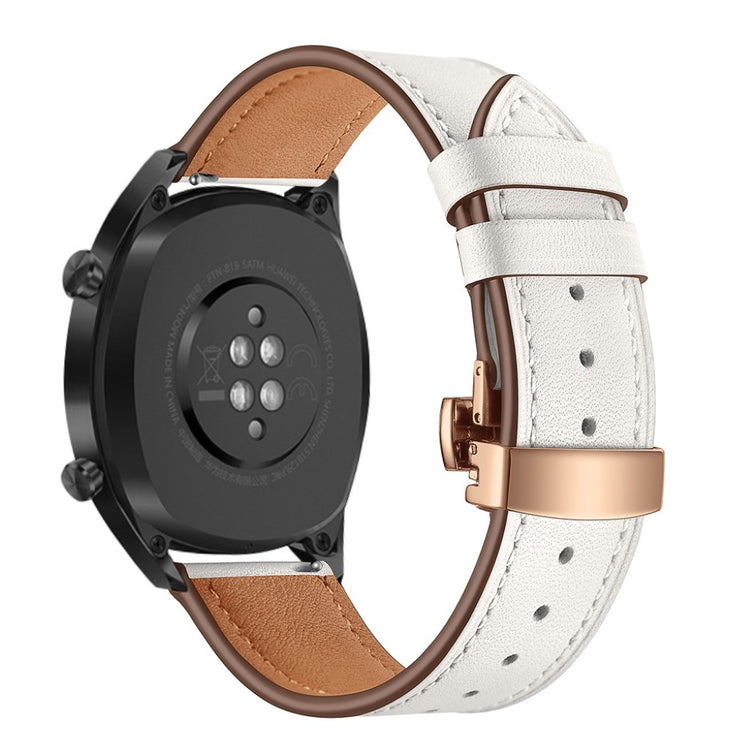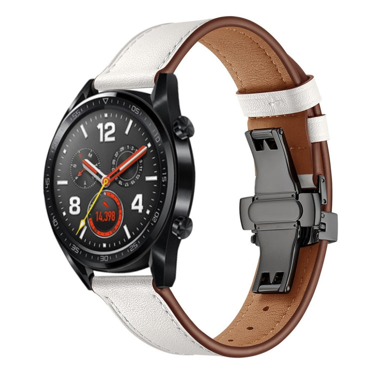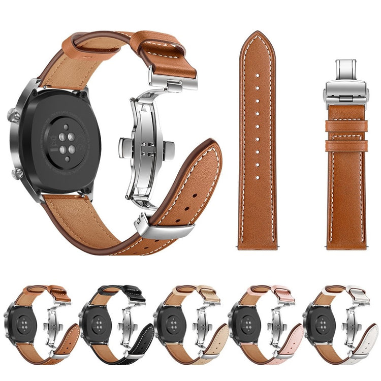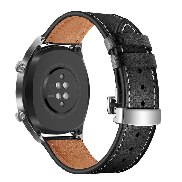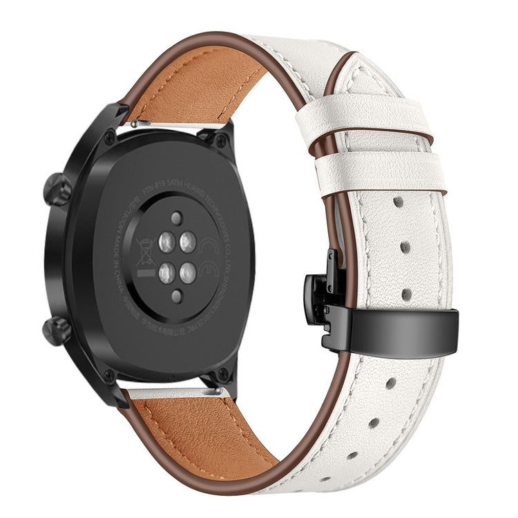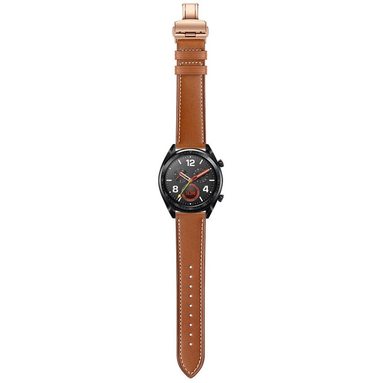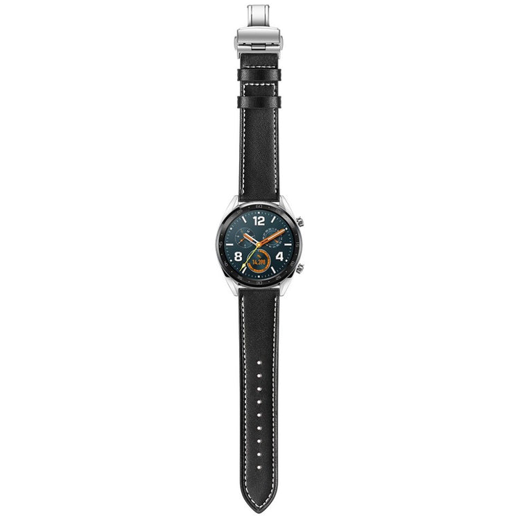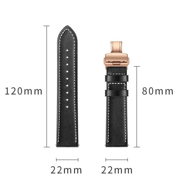 Dette er et 22 mm ekte lær urskivearmbånd som passer til Huawei Watch GT1 / 2 / Watch Magic. Armene har holdbare spenner for enkelt påføring og avtakelse, samt justerbare hull for optimal størrelse. Dette er et ideelt erstatningsarmbånd for ditt gamle eller ødelagte armbånd, med lengde på 80 mm + 120 mm og bredde på 22 mm.