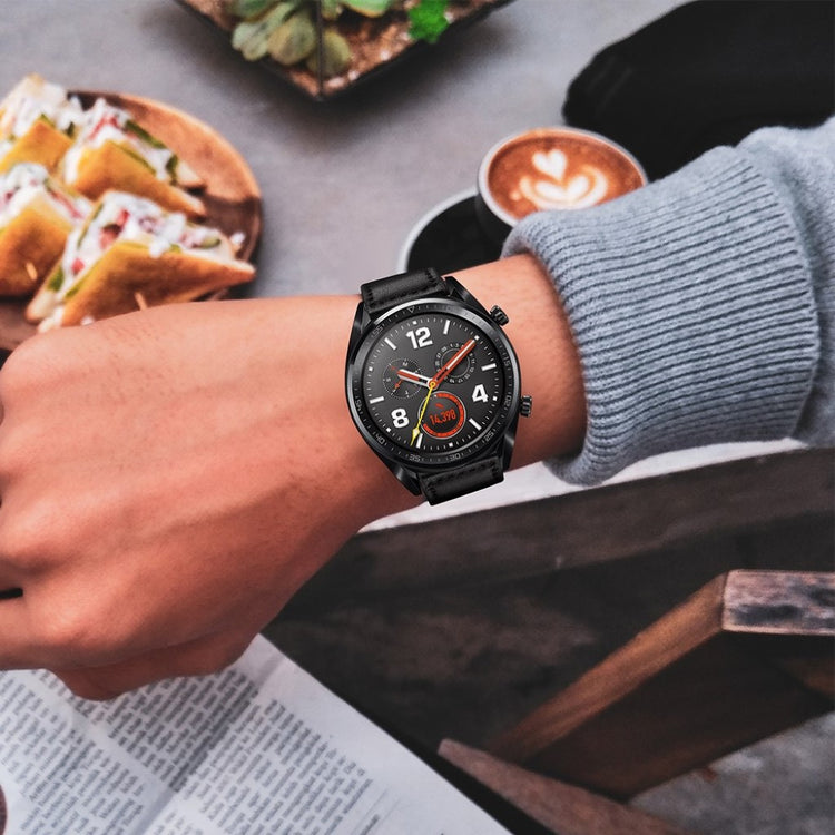 22mm kvalitets ekte lær armbånd er en perfekt erstatning for din gamle eller ødelagte klokke. Laget av ekte lær av høy kvalitet, gir det både eleganse og komfort, og kan justeres etter individuelle håndleddsstørrelser. Med utmerket søm og holdbarhet, passer det til en rekke smartklokker som Huawei Watch GT og Samsung Gear modeller.