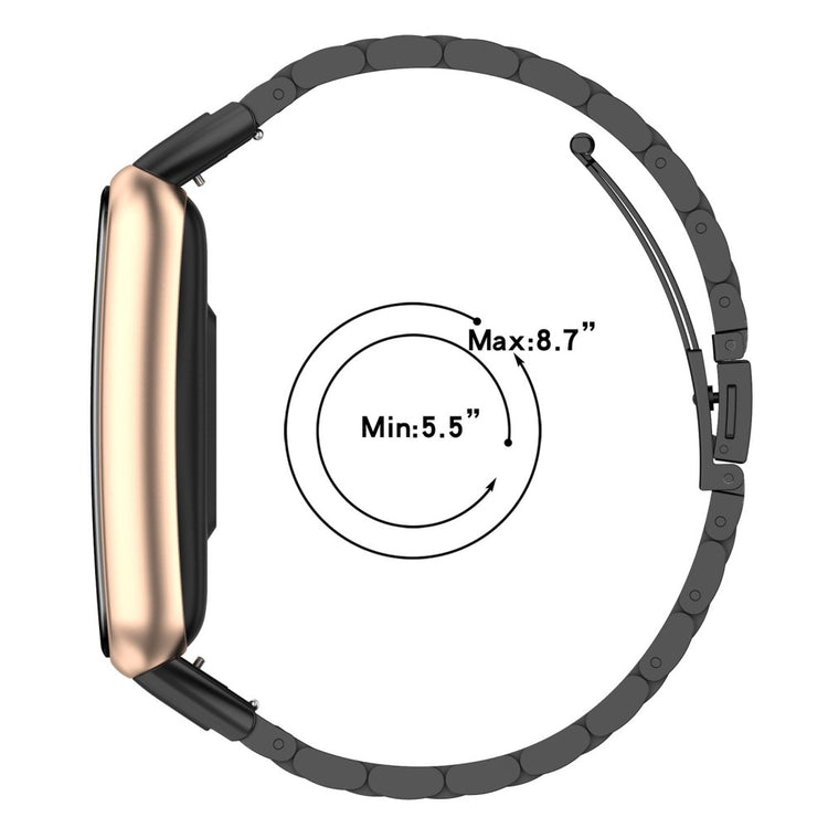 Oppgrader din smartklokke med dette stilige armbåndet i høy kvalitet! Dette er et ideelt alternativ for deg som ønsker å erstatte et gammelt eller ødelagt armbånd. Laget av høy-kvalitets rustfritt stål, gir det et elegant og moderne utseende som vil komplementere enhver stil. Den eksklusive folding-buckles designen sikrer at armbåndet sitter trygt på håndleddet ditt, samtidig som det er vakkert og praktisk. Med sin fine håndverkskvalitet og glatte overflate, er det behagelig å ha på seg hele dagen. Passer håndleddsomkrets fra 5.5 til 8.7 tommer, og med en strap-lengde på 185mm og bredde på 22mm, gir det en perfekt passform for de fleste. Velg dette armbåndet for en fornyelse av ditt smarte tilbehør!