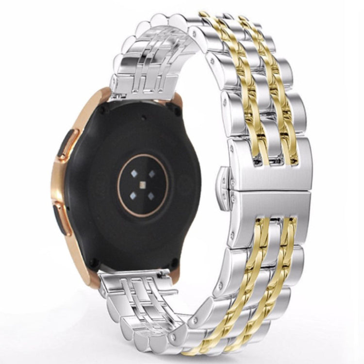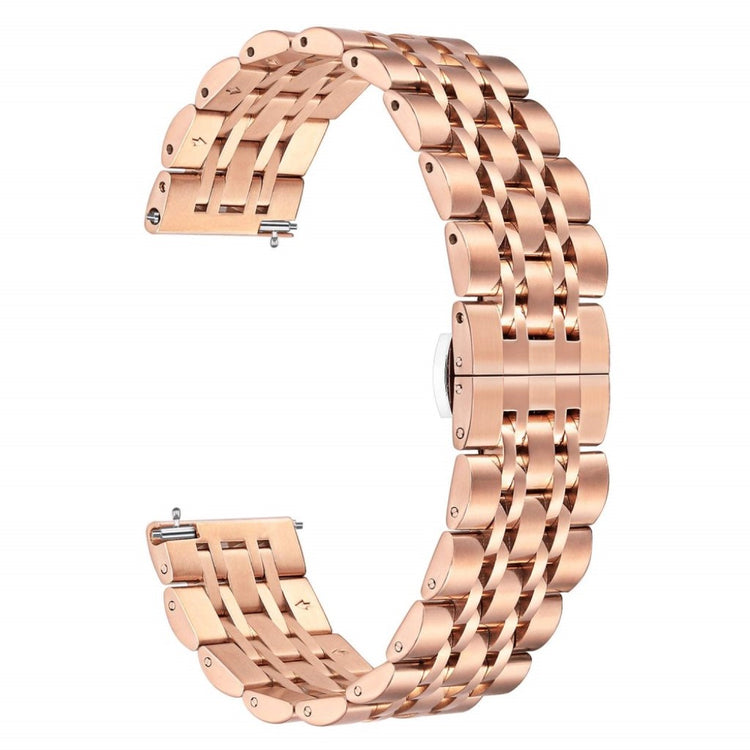 Oppgrader ditt smartklokkeutstyr med vårt 22mm sommerfuglspenne i rustfritt stål. Dette armbåndet er laget av holdbart rustfritt stål, som gjør det både slitesterkt og komfortabelt å ha på seg. Den spesielle sommerfuglspennen gir en enkel og rask installasjon og fjerning, noe som gjør det til et utmerket valg for de som ønsker å skifte stil på klokken sin uten bryderi. Armbåndet er en perfekt erstatning for et ødelagt eller ubrukelig bånd, slik at du kan gjenvinne bruken av smartklokken din. Med en bredde på 22mm er dette armbåndet kompatibelt med en rekke modeller, inkludert Samsung Galaxy Watch 46mm, Huami Amazfit GTR 47mm, LG G Watch, Asus Zenwatch, Fossil Q og mange flere. Velg dette armbåndet for å kombinere stil og funksjonalitet, og gi klokken din et nytt liv!
