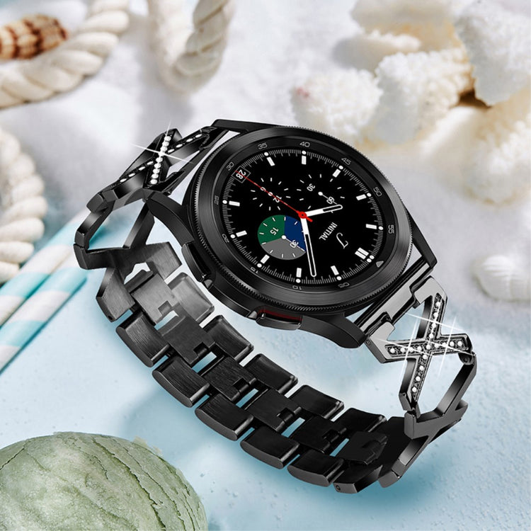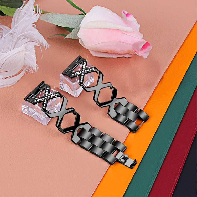 Oppgrader din smartklokke med denne stilige og slitesterke lenken i premium rustfritt stål. Med et unikt X-design og glitrende rhinestener gir denne remmen klokken din et luksuriøst preg.