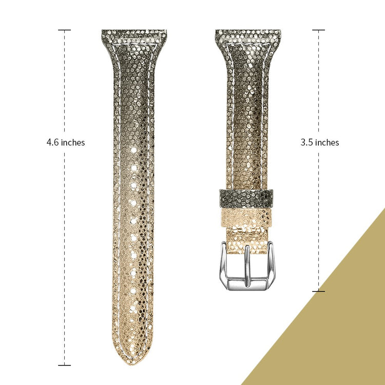 Denne stilige erstatningsremmen er laget av førsteklasses kuskinn, noe som gir en myk og komfortabel brukeropplevelse. Remmen har et gradientfarget design som gir den et unikt og elegant utseende. Den polerte spennen i rustfritt stål gjør det enkelt å justere størrelsen for en perfekt passform.