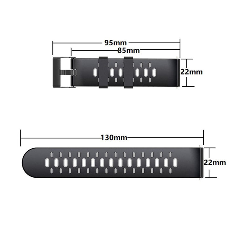 Oppgrader smartklokken din med et stilfullt og funksjonelt tilbehør! Denne 22mm 3 Rader Holer Bi-farget Silikon Myk Klokke Montasje passer perfekt til Samsung Galaxy Watch3, Galaxy Watch, Gear S3 Frontier og Gear S3 Classic. Laget av høy-kvalitets silikon, er remmen både myk og komfortabel å ha på seg hele dagen. Den allergivennlige materialet er skånsomt mot huden, slik at du kan bruke den uten bekymringer. Den smarte hull-designet gjør det enkelt å justere størrelsen til din håndleddsomkrets, noe som gir en perfekt passform. Enten du skal på trening, på jobb eller ut med venner, er dette den ideelle erstatningen for din gamle eller ødelagte rem. Med en vekt på kun 21g vil du knapt merke at du har den på, samtidig som den gir din klokke et friskt og nytt utseende. Ikke gå glipp av sjansen til å fornye stilen din med et tilbehør som kombinerer komfort, stil og funksjonalitet!