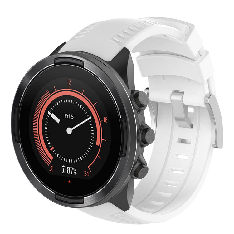 Bytt ut det gamle eller ødelagte armbåndet med dette justerbare silikonbåndet som passer til Suunto 9. Det har en klassisk metallspenne med plating-finish og flere hull for enkelt justering av størrelse. Med en lengde på 131,2 + 98,4 mm og bredde på 24,2 mm, er dette båndet både holdbart og miljøvennlig.