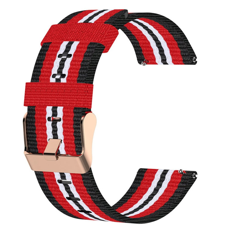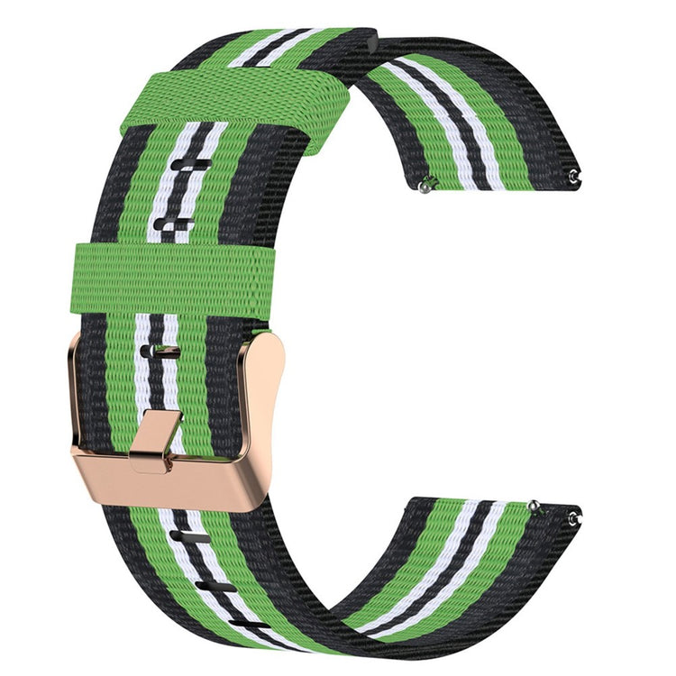 Oppgrader klokkeopplevelsen din med et nytt, stiligt klokkerem i nylonkanvas! Dette sporty og funksjonelle remmen er laget av pustende og slitesterkt materiale, som gjør at det er ideelt for både trening og daglig bruk. Designet gir et særegent uttrykk, slik at du kan tilføre moderne stil til klokken din. Med en spenne som sikrer rask justering og trygg festing, slipper du bekymringer om at remmen glipper. Du kan også velge mellom flere farger, slik at remmen tilfredsstiller dine personlige stilmessige behov. Dette er et perfekt alternativ om du trenger en erstatning for din gamle eller ødelagte rem. Med en lugbredde på 19mm og spesifikasjoner som er kompatible med flere modeller, er dette et must-have tilbehør for alle som ønsker å forbedre smartwatch-opplevelsen sin!
