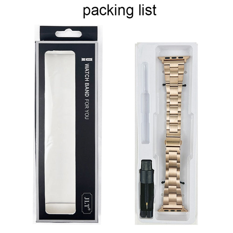 Oppgrader stilen på smartklokken din med JLT for Apple Watch! Denne armbåndsremmen er laget av høykvalitets rustfritt stål, noe som gjør den både holdbar og motstandsdyktig mot slitasje. Med et elegant design med tre perler, gir den et unikt preg som passer perfekt til både forretningsmøter, fester og hverdagsbruk. Det smarte sammenleggbare spenne gjør det enkelt å ta det av og på, noe som gir deg en praktisk løsning for hverdagslivet. I tillegg er denne remmen en ideell erstatning for en gammel eller ødelagt rem, og gir nytt liv til klokken din. Med en lengde på 180 mm og justerbar til håndleddsomkrets på 5.51-7.87 tommer, passer den de fleste håndledd. Investér i JLT armbåndsremmen for å gi smartklokken din et stilfullt og personlig preg!
