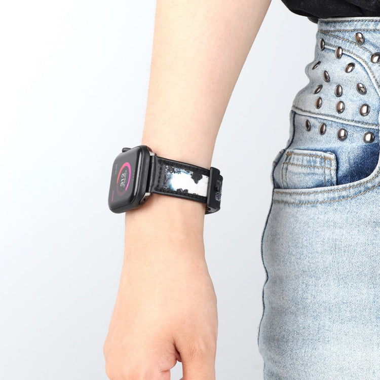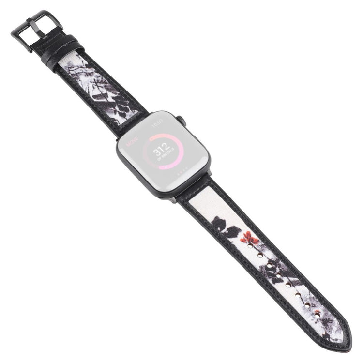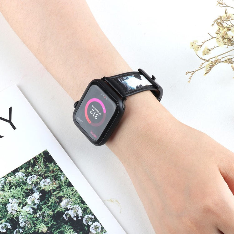 Oppgrader stilen din med dette unike klokkeremmen med motiv av fjell- og vannlandskap, perfekt for din Apple Watch Series 7 / 8 41mm, 4 / 5 / 6, SE, SE(2022) 40mm, og 1 / 2 / 3 38mm! Denne remmen gir deg muligheten til å personalisere enheten din på en stilfull måte. Laget av høykvalitets lær, tilbyr remmen en moderat mykhet og utmerket håndverk, noe som gjør den komfortabel å ha på seg gjennom hele dagen. Med et flere-hull design er det enkelt å justere størrelsen for en perfekt passform. Du trenger ikke å bekymre deg for komplisert installasjon; remmen er lett å montere og fjerne. Skap et personlig preg på din smartwatch med dette fantastiske tilbehøret!