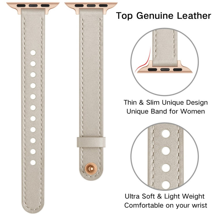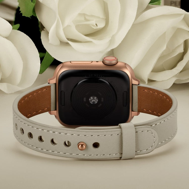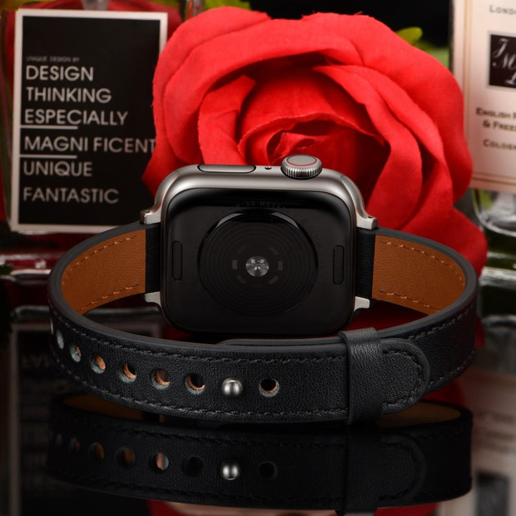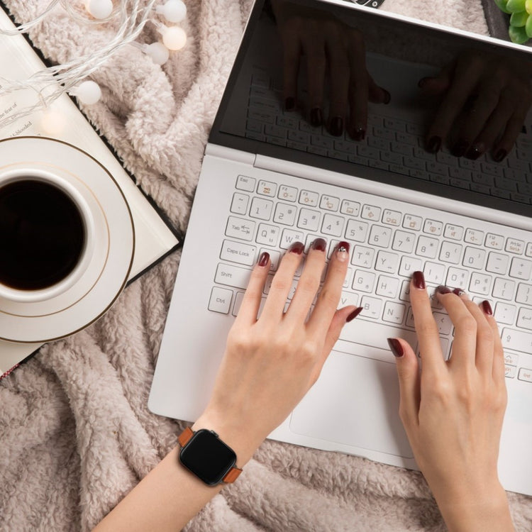 Denne reimen i ekte skinn er perfekt for din Apple Watch. Den er slitesterk og har et elegant design som passer til enhver anledning. Med flere hull kan du enkelt justere størrelsen til din håndleddsomkrets. Et ideelt valg for å erstatte din gamle, ødelagte reim, og den er både enkel å installere og fjerne.