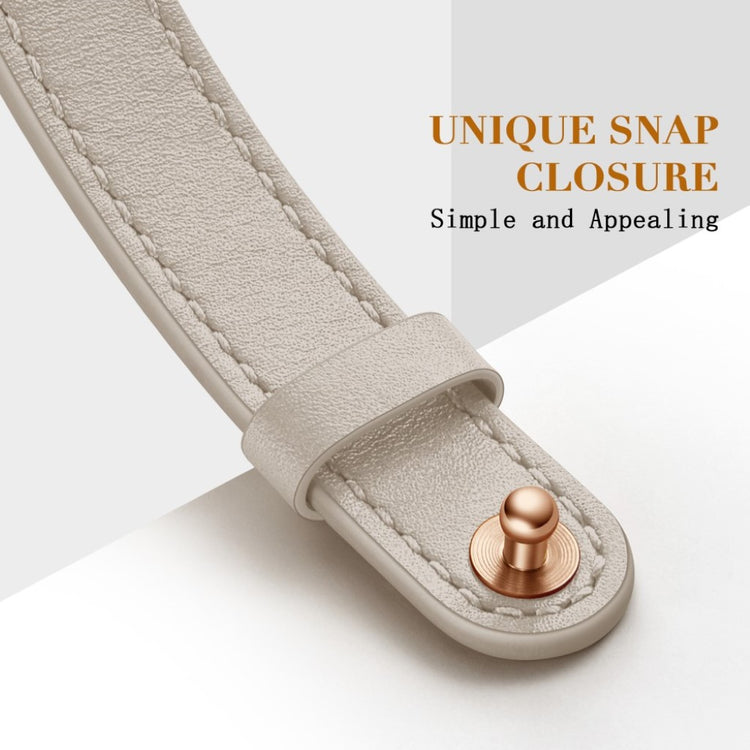 Oppgrader klokka di med et stilfullt og funksjonelt armbånd i ekte lær for Apple Watch! Dette armbåndet er laget av førsteklasses ekte lær, noe som gir både holdbarhet og en luksuriøs følelse på håndleddet. Den smarte hulldesignen gjør det enkelt å justere størrelsen, slik at det passer perfekt til din håndleddsomkrets. Enten du ønsker å erstatte et gammelt eller ødelagt armbånd, eller bare vil gi klokka di en ny look, er dette det ideelle valget. Det er også enkelt å installere og fjerne, slik at du kan bytte armbånd etter humør eller antrekk. Med en størrelse på 80+120mm og en lett vekt på kun 15g, er dette armbåndet både komfortabelt og praktisk. Gjør klokka di personlig og elegant med dette tidløse armbåndet!