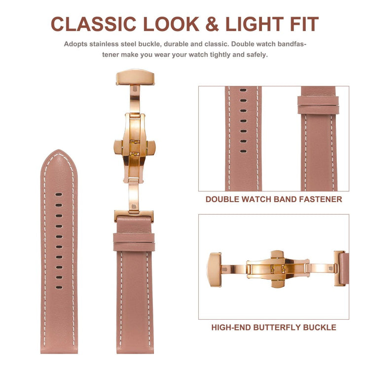 Oppgrader smartklokken din med denne stilige og komfortable reimen i ekte lær med elegant sømdesign. Reimen er giftfri, allergivennlig og behagelig å ha på. Den klassiske pinnespennen gjør den enkel å ta av og på, og størrelsen kan justeres for å passe perfekt til ditt håndledd. En ideell erstatning for din gamle, slitte klokkereim.