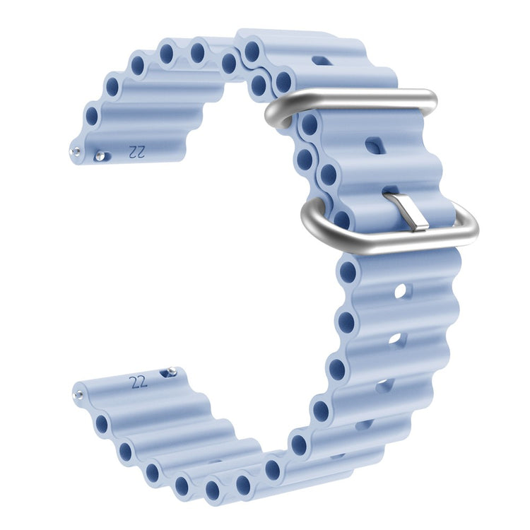 Denne universelle silikonremmen er laget av høy kvalitets silikon, og er myk og komfortabel å ha på. Det unike og stilige designet med flere runde bølger gir et moderne preg. Remmen har flere hull, noe som gjør det enkelt å justere størrelsen og tilpasse den perfekt til håndleddet ditt. En ideell erstatning for din gamle, ødelagte rem.