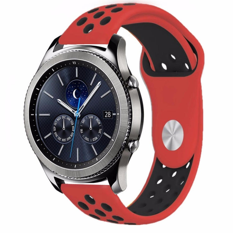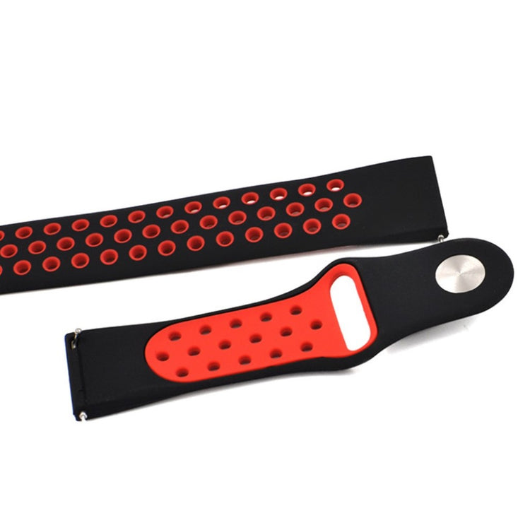 Denne slitesterke silikonreimen i tofarget design gir et friskt utseende på håndleddet ditt. Remen er laget av miljøvennlig silikon som er motstandsdyktig mot slitasje. Flere hull sørger for enkel justering av størrelsen, og gjør den til en ideell erstatning for din gamle, ødelagte reim.