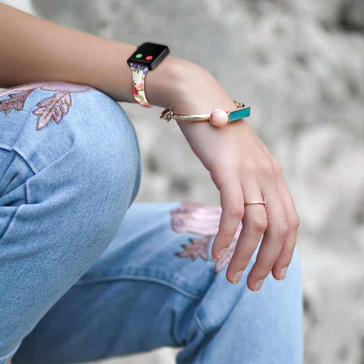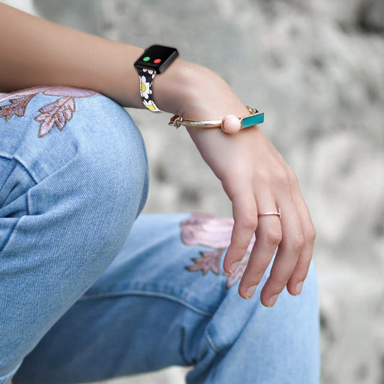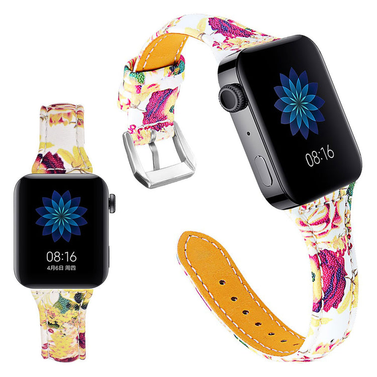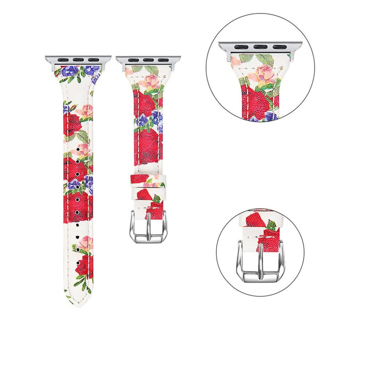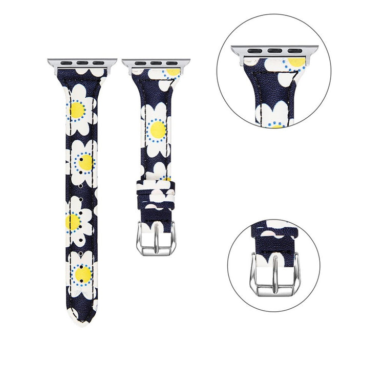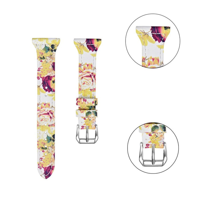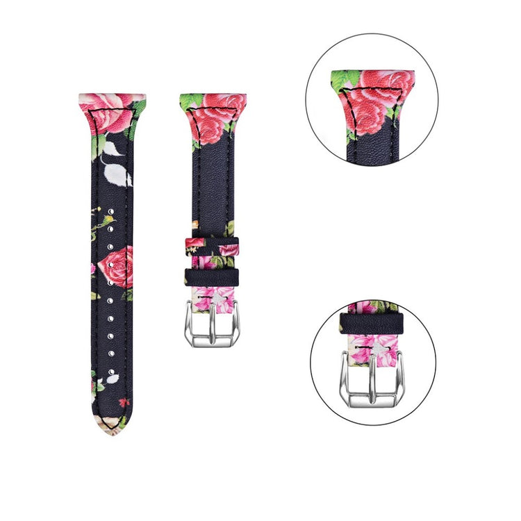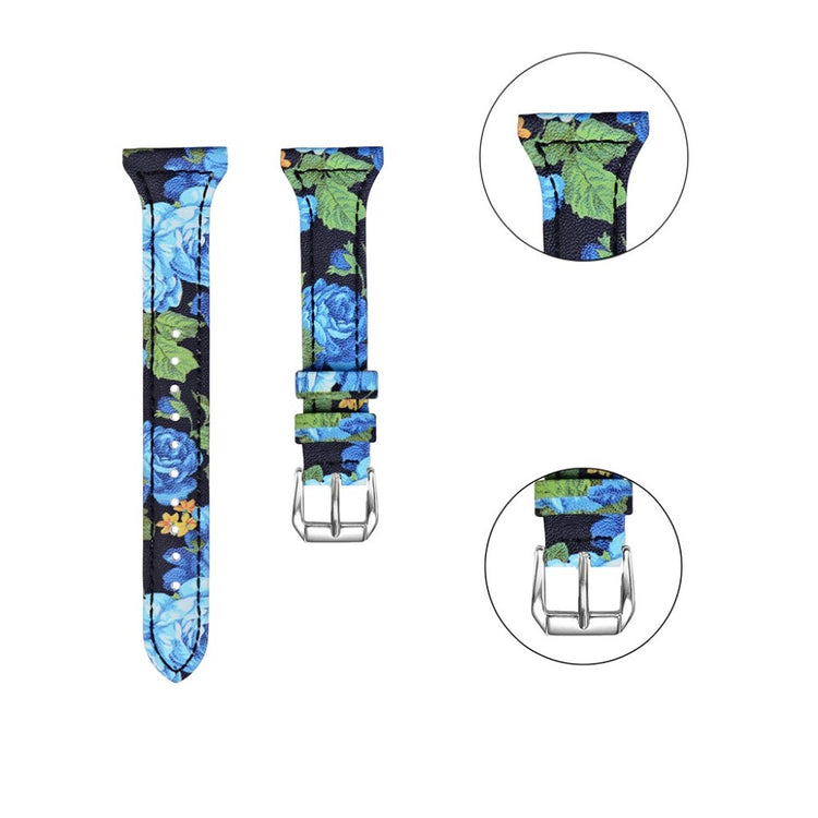 Oppgrader din smartklokke med denne stilige og komfortable 18mm klokkeremmen med blomstermønster. Remmen er belagt med ekte lær og har en moderat mykhet som gir en behagelig brukeropplevelse. Den klassiske metallspennen gjør det enkelt å ta klokken av og på, og hullene i remmen sørger for enkel justering til din størrelse. Dette er den ideelle erstatningen for din gamle, slitte klokkerem.