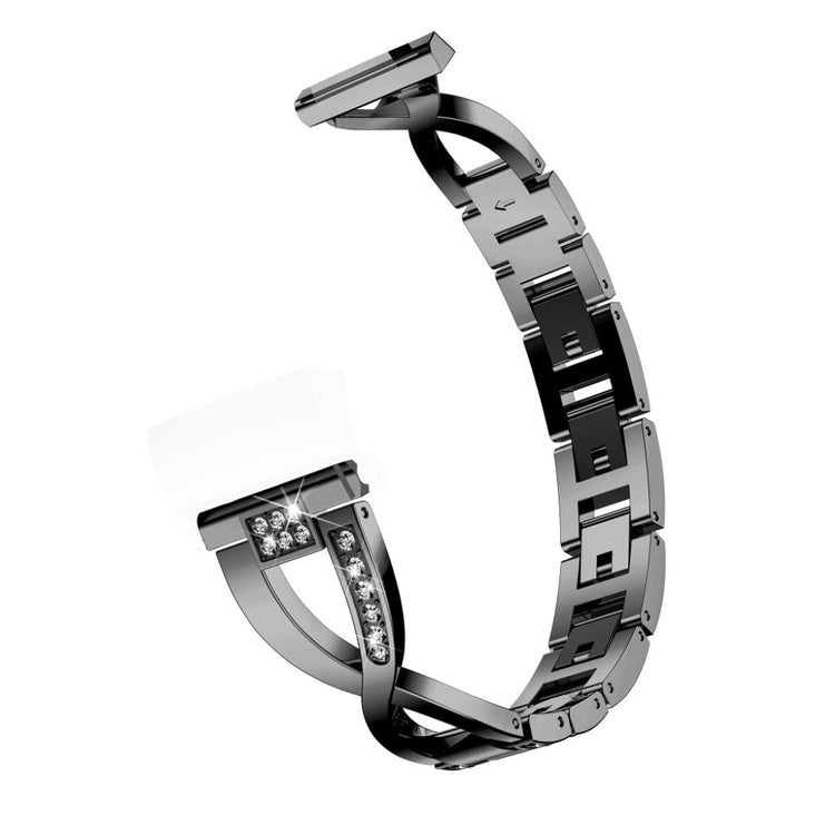 Denne stilige klokkereimen er laget av høykvalitetslegert materiale som er både slitesterkt og gir et luksuriøst preg. Den X-formede designen er dekorert med glitrende strass-stener som gir klokken din et elegant utseende.