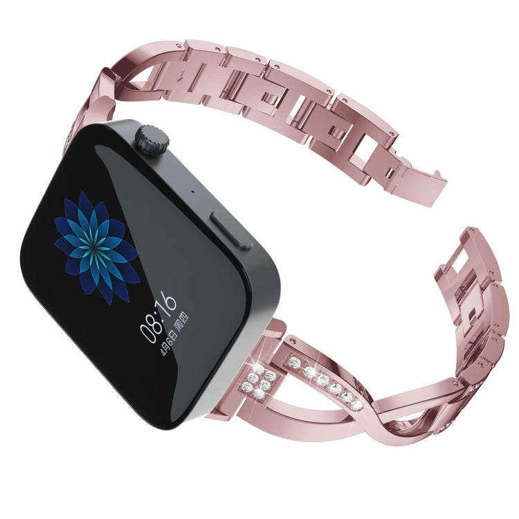 Dette er et høykvalitets armbånd laget av holdbart legeringsmateriale, perfekt for din Xiaomi Mi Watch. Den stilige X-formede designen er prydet med glitrende rhinestones, som gir et luksuriøst utseende. Armbåndet er enkelt å justere i lengden for å passe til håndleddet ditt, og er en flott erstatning for et ødelagt armbånd.