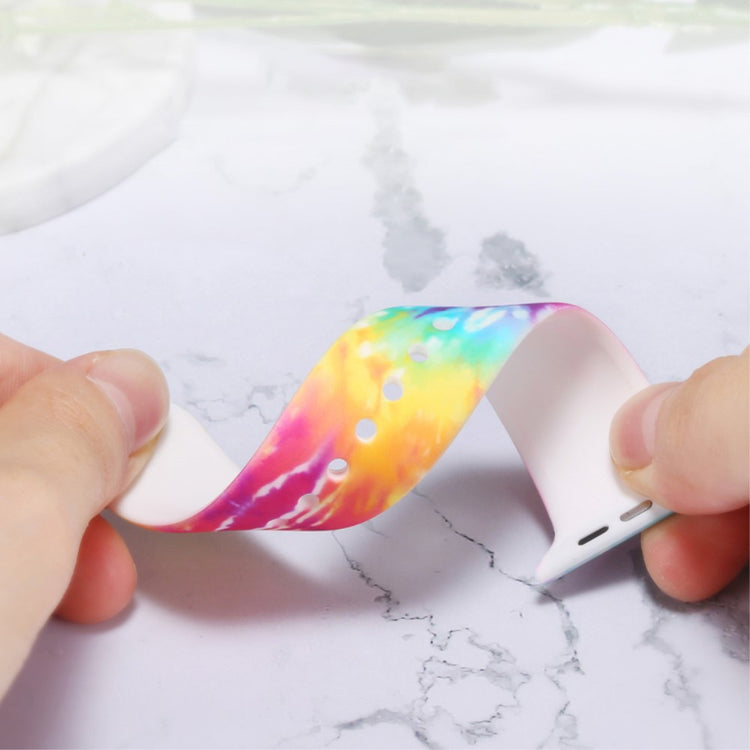Denne silikonreimen er designet for Apple Watch Series 9 / 8 / 7 41mm / 6 / 5 / 4 / SE (2023) / SE (2022) / SE 40mm / 3 / 2 / 1 38mm. Laget av miljøvennlig silikonmateriale, er den slitesterk og tåler daglig bruk. Det trykte mønsteret gir et stilig og moderne utseende.