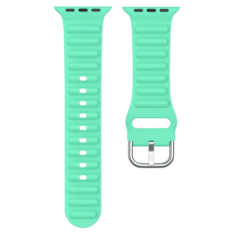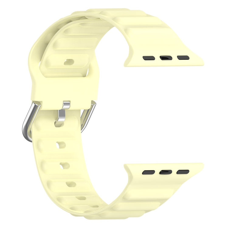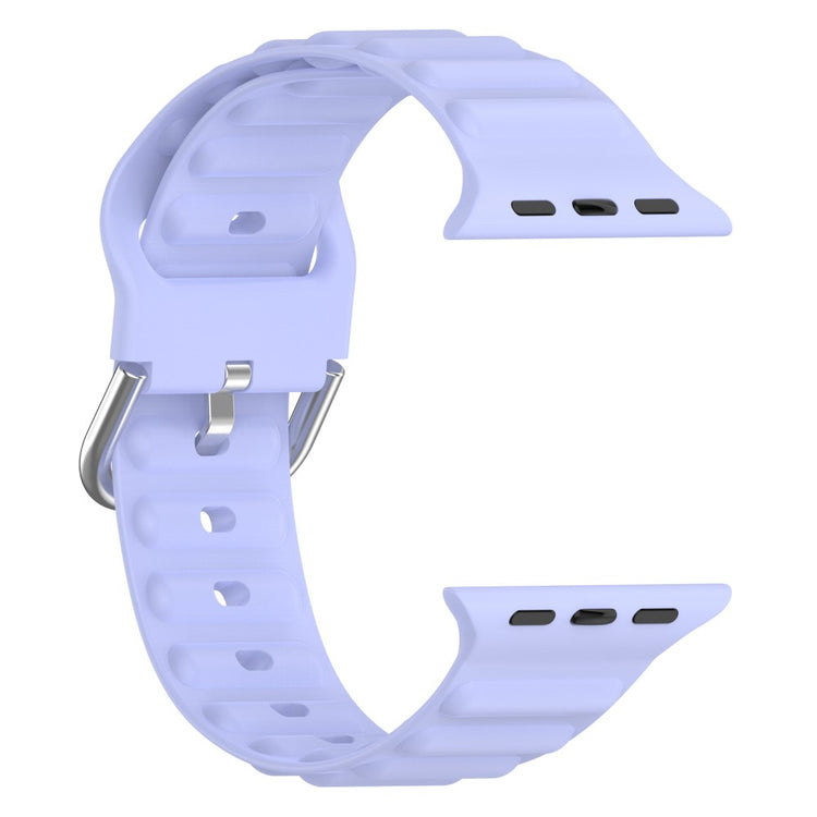 Oppgrader din stil med dette elegante og komfortable båndet til din Apple Watch! Laget av høy-kvalitets silicone med et trendy bølgedesign, gir dette båndet en perfekt kombinasjon av stil og funksjonalitet. Det myke materialet er skånsomt mot huden og forårsaker ingen allergiske reaksjoner, noe som gjør det ideelt for daglig bruk. Den solide spennen av premium materiale sikrer at båndet holder godt på plass, samtidig som det gir en moderne touch. Med sitt smarte hulldesign og firkantede pinne kan du enkelt justere størrelsen etter din håndleddsomkrets, slik at båndet sitter perfekt. Dette er den perfekte erstatningen for ditt gamle eller ødelagte bånd, og det passer til både arbeids- og fritidsaktiviteter for både kvinner og menn. Ta steget mot en mer stilfull hverdag med dette praktiske og allsidige klokkeremmet!