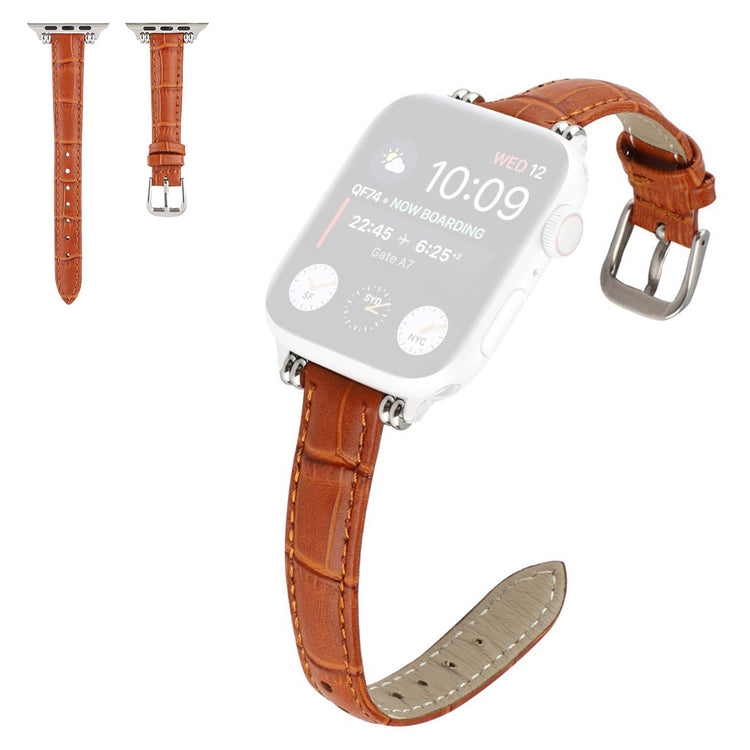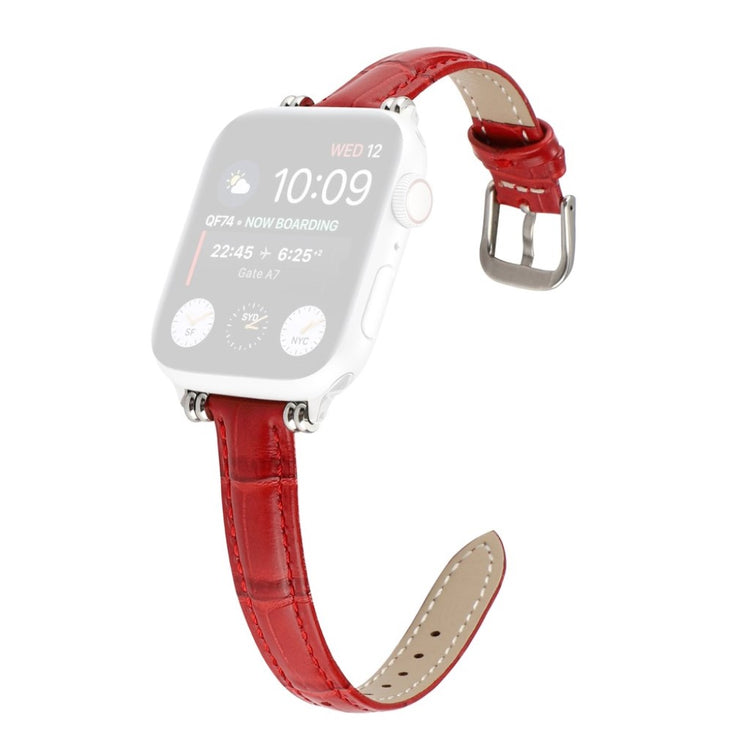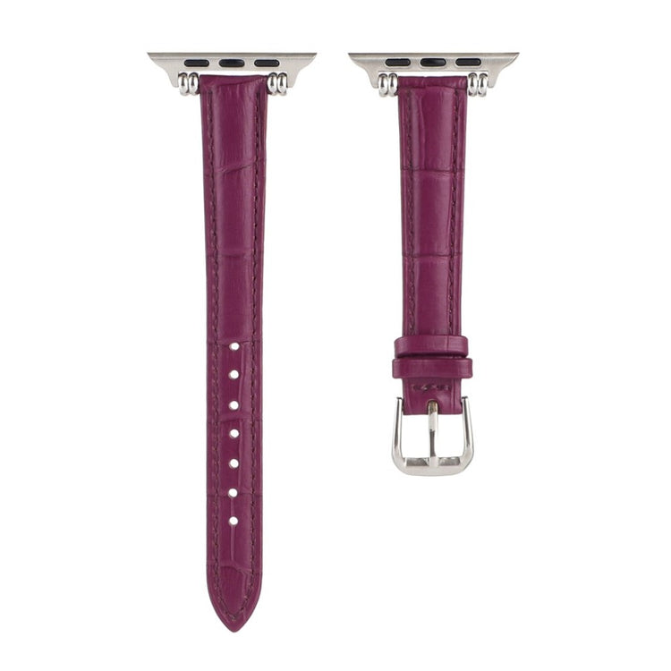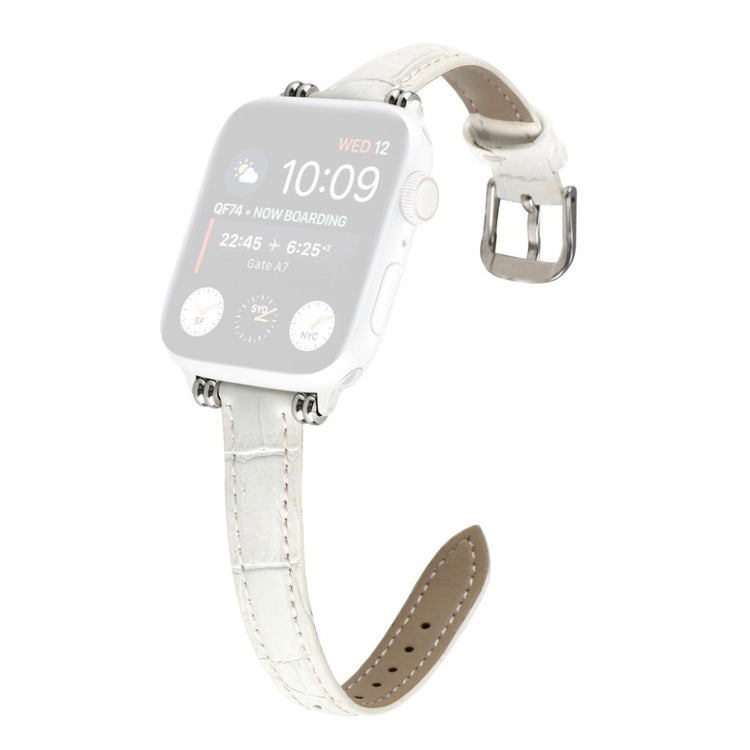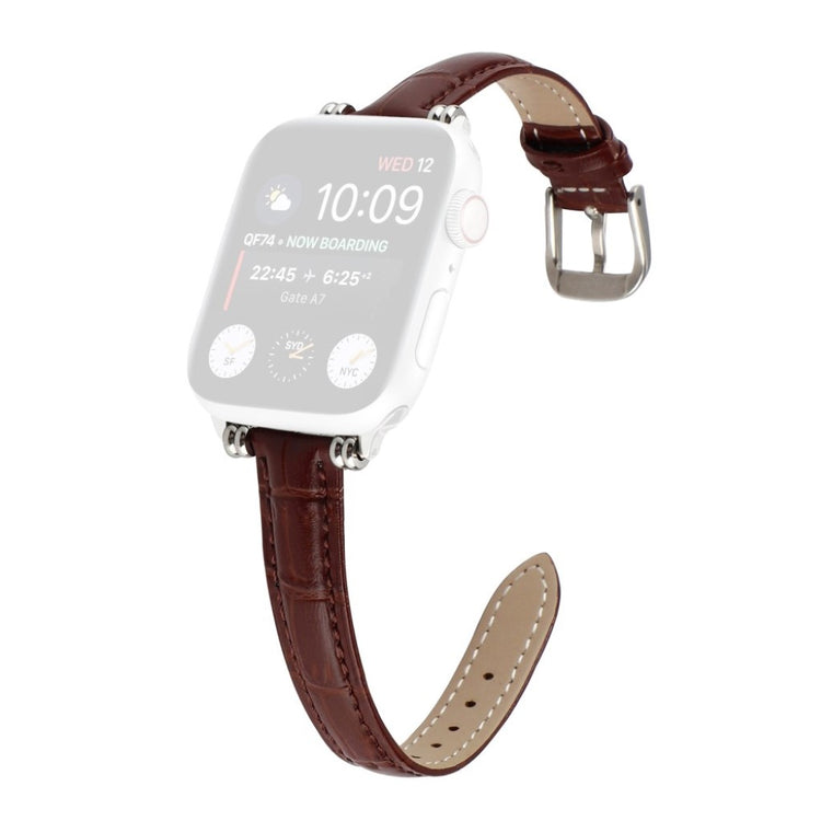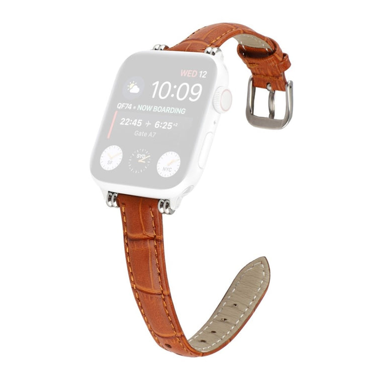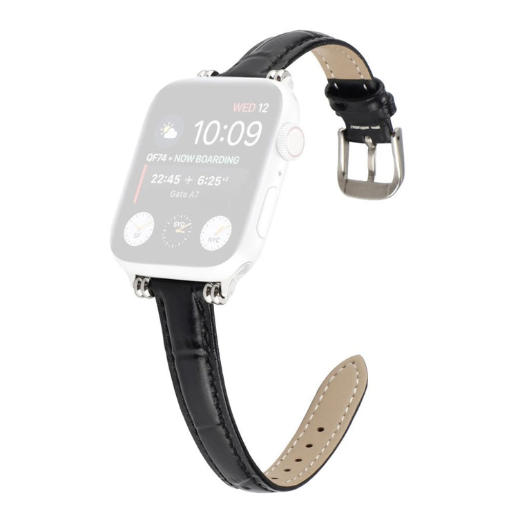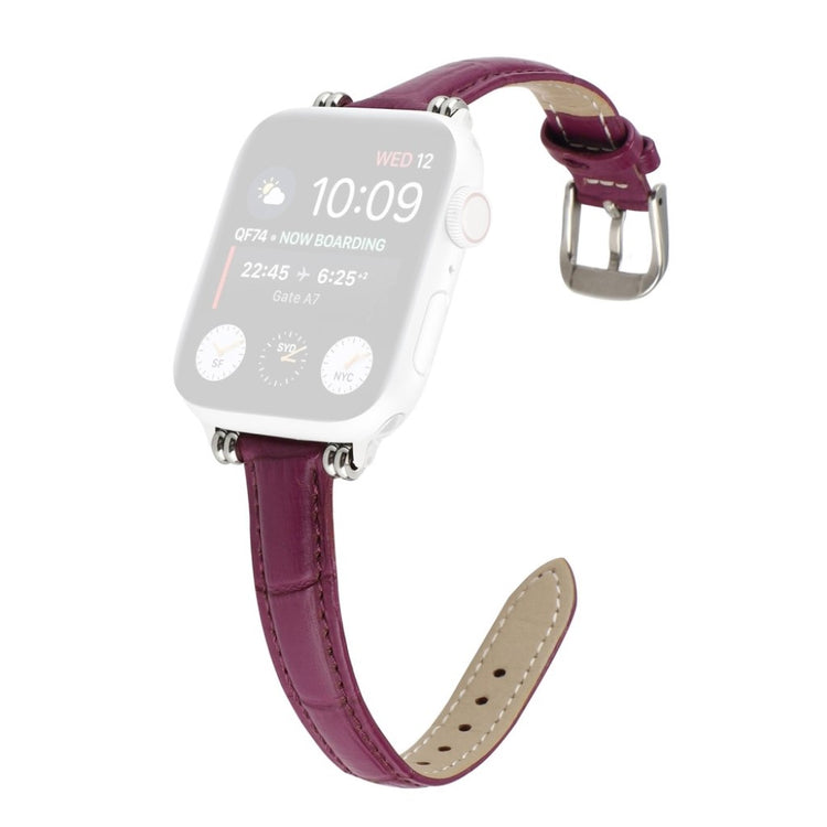 Denne stilige klokkereimen i ekte lær med krokodillemønster gir Apple Watch-en din et sofistikert preg. Reimen er behagelig å ha på og har en metallspenne som gjør den enkel å ta av og på.