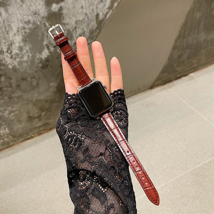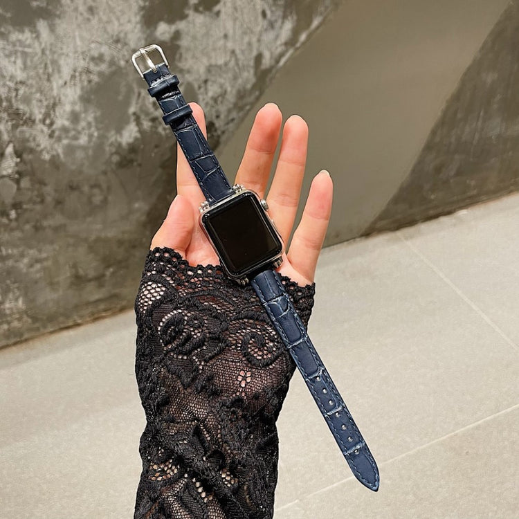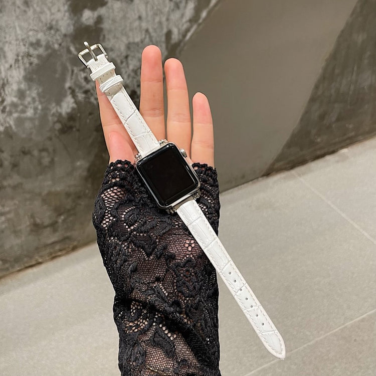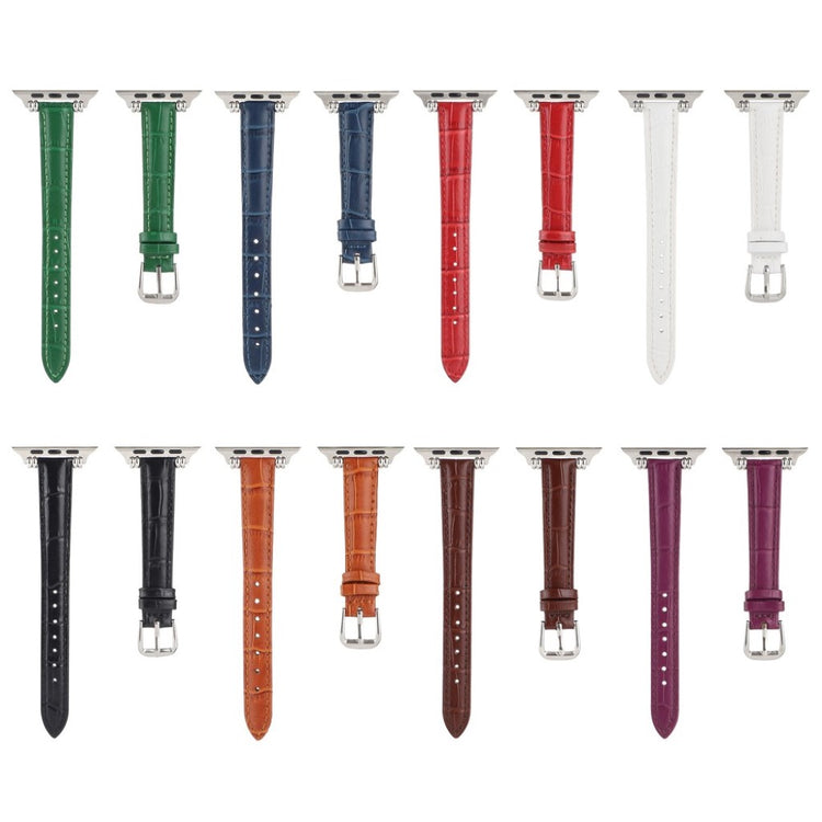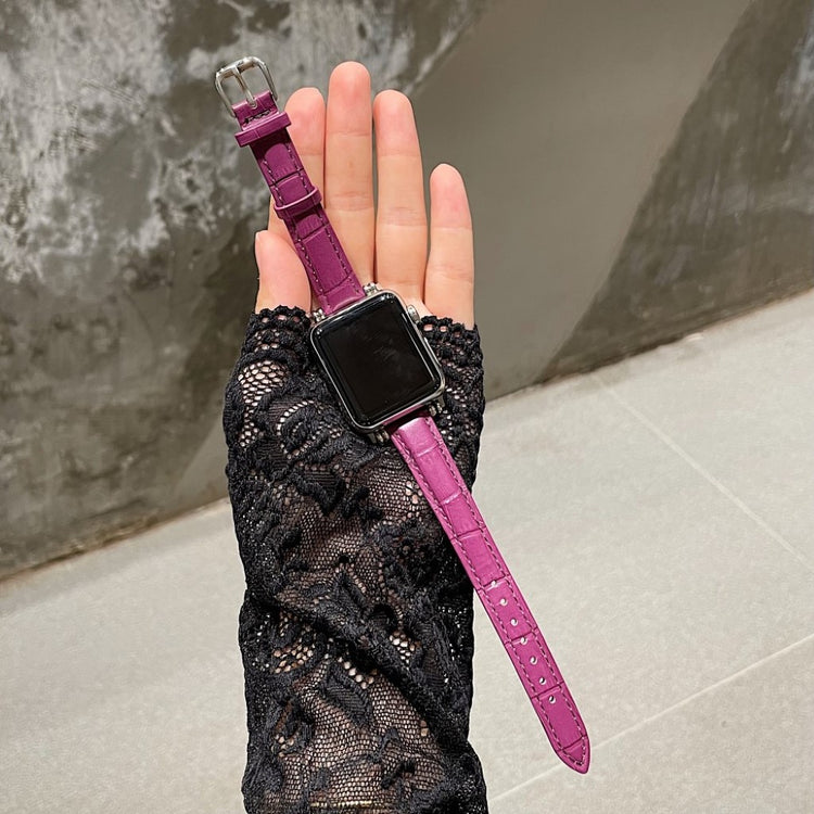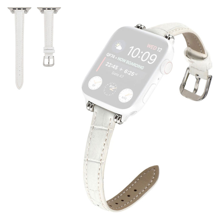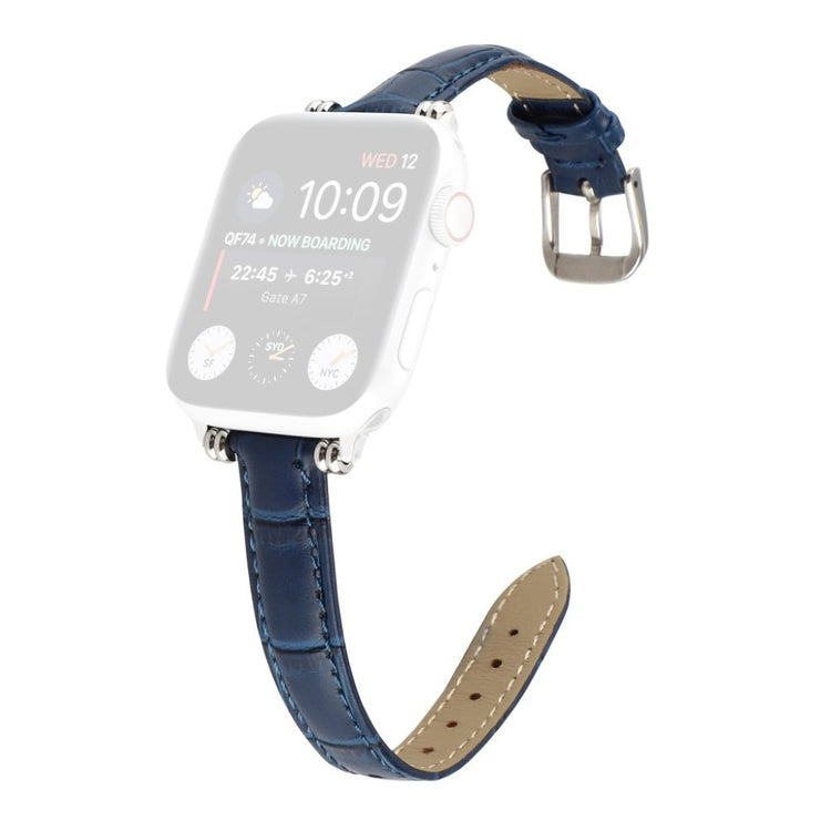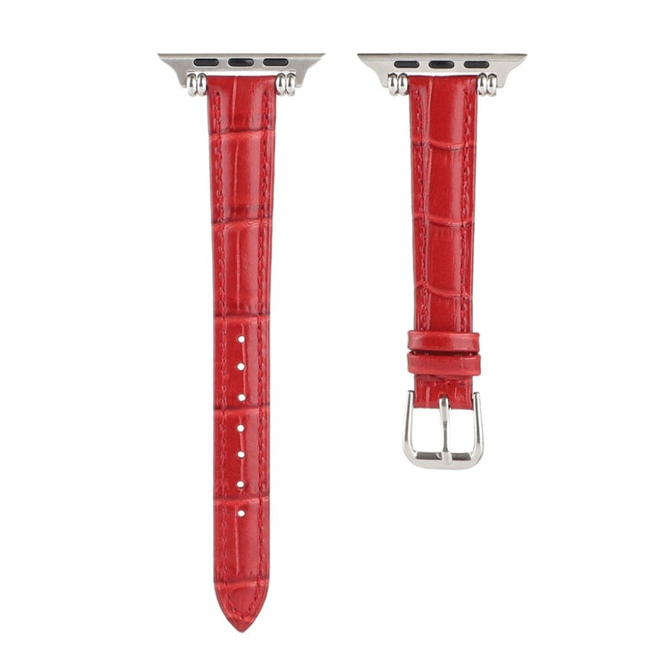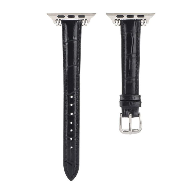 Denne stilige klokkereimen i ekte lær med krokodillemønster gir Apple Watch-en din et sofistikert preg. Reimen er behagelig å ha på og har en metallspenne som gjør den enkel å ta av og på.