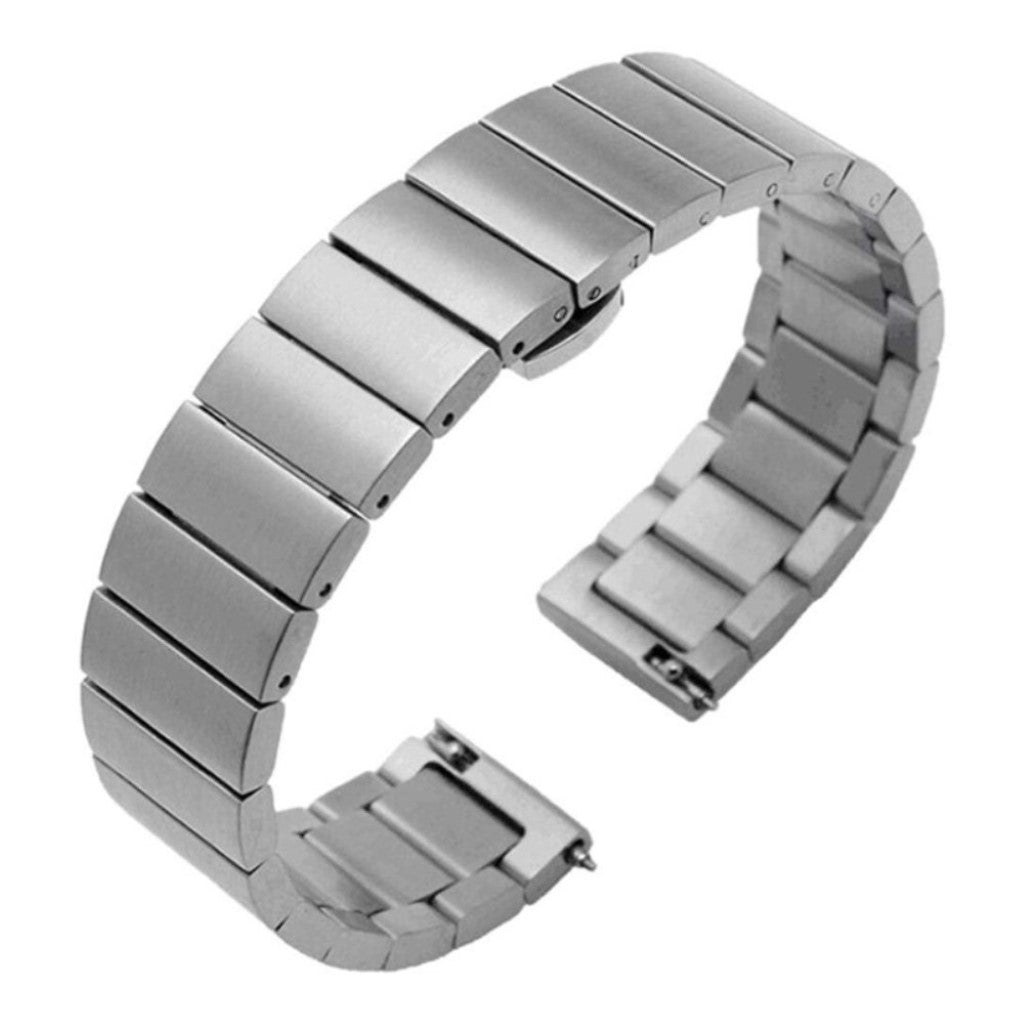 Butterfly-spenne i børstet rustfritt stål er laget av anodisert 304L rustfritt stål, som gir en jevn overflate med høy slitestyrke og rustmotstand. Den har en enkel frigjøringsknapp på begge sider, som gjør den lett å åpne og lukke, samtidig som den sikrer at stroppen sitter trygt på håndleddet. Passer håndleddsomkrets fra 5,67 til 7,87 tommer (144-200 mm).