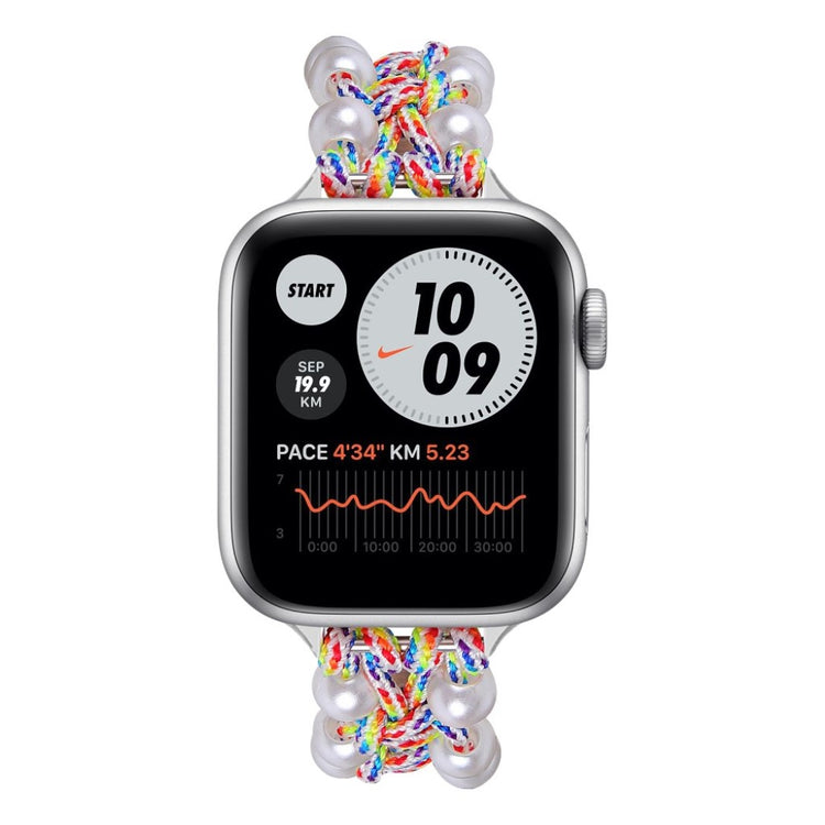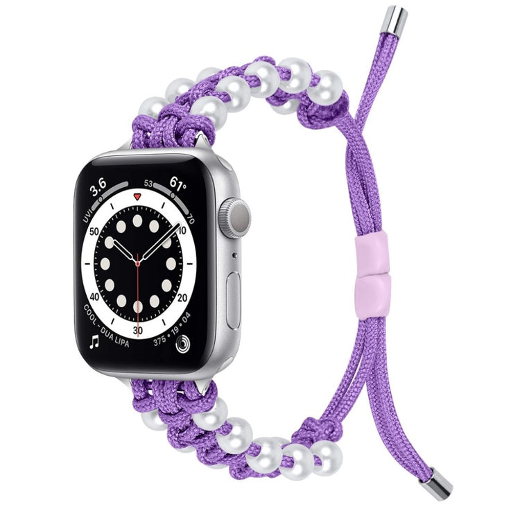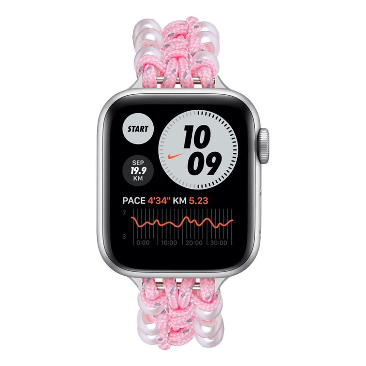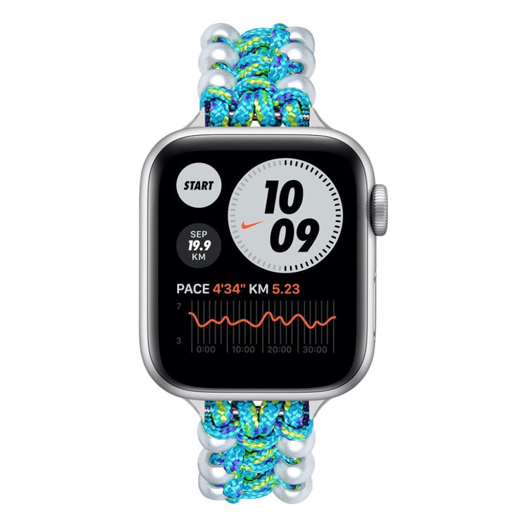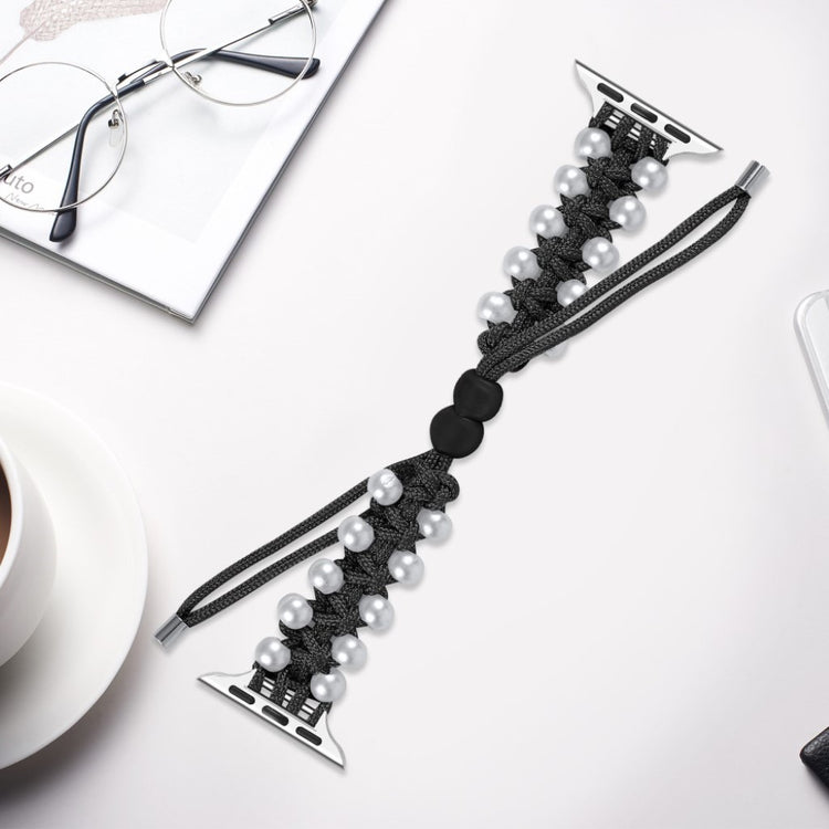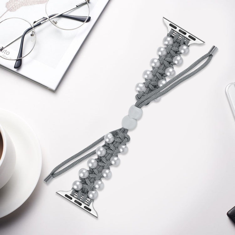 Denne flettede nylonremmen med kunstige perler gir Apple Watch-en din et elegant og stilig preg. Remmen er komfortabel å ha på og kan justeres for å passe perfekt til håndleddet ditt.