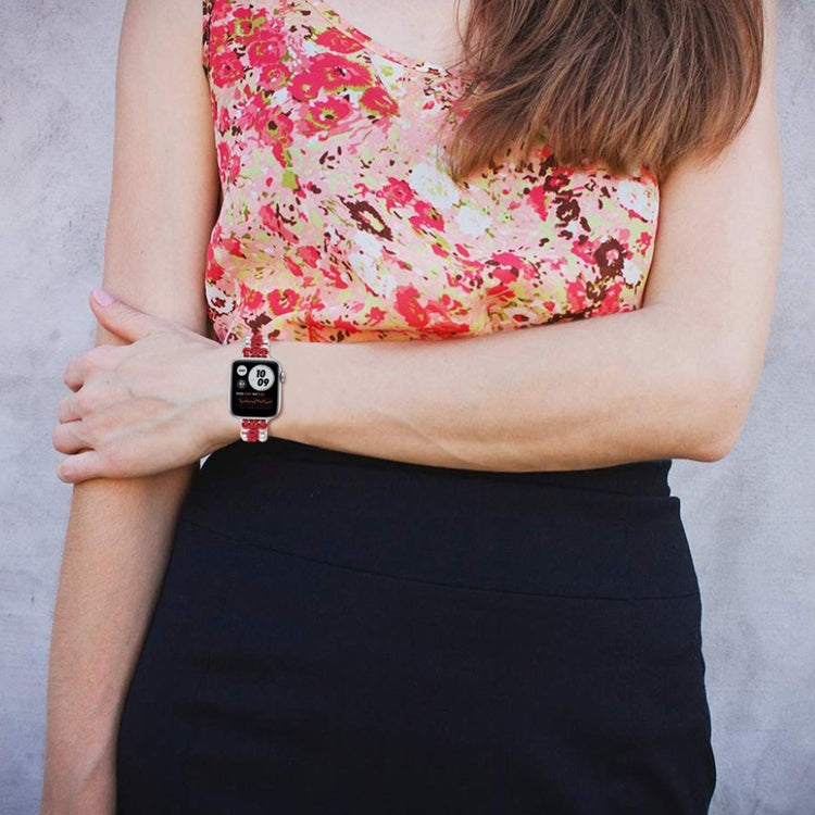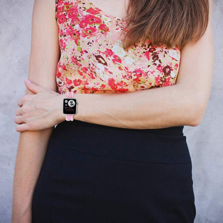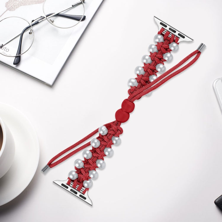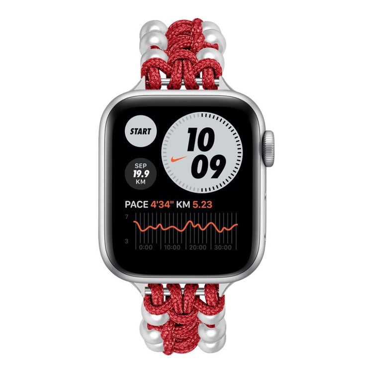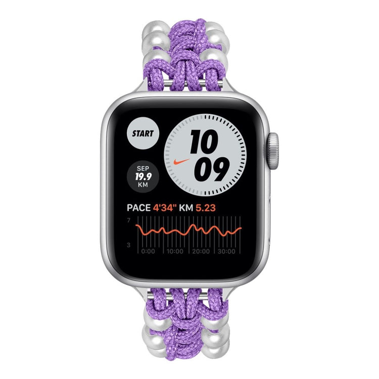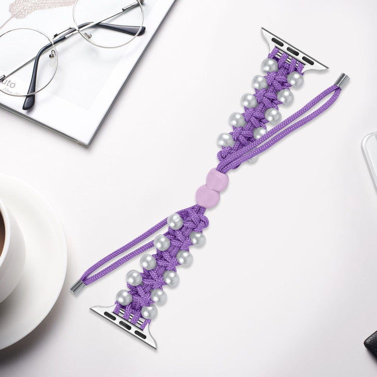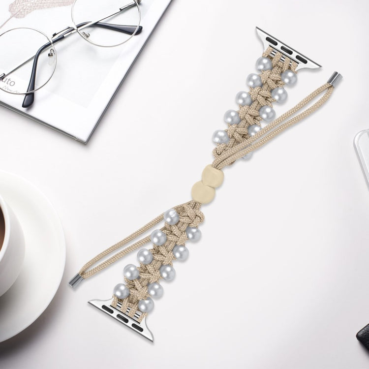 Denne flettede nylonremmen med kunstige perler gir Apple Watch-en din et elegant og stilig preg. Remmen er komfortabel å ha på og kan justeres for å passe perfekt til håndleddet ditt.
