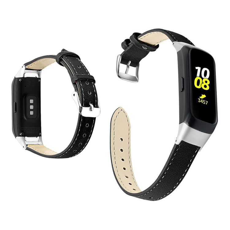 Dette ekte lærremmen er designet for Samsung Galaxy Gear Fit SM-R70 - Stil A, og gir både holdbarhet og fleksibilitet for komfortabel bruk. Den metallspenne gjør det enkelt å ta på og av, mens hullene på remmen gir deg muligheten til å justere størrelsen til din håndleddsomkrets. Perfekt som en erstatning for en gammel eller ødelagt rem.