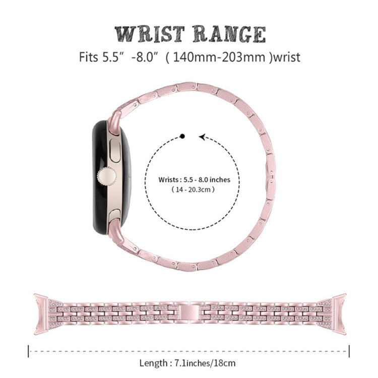 Super slidstærk Google Pixel Watch Metal og Rhinsten Rem - Pink#serie_7