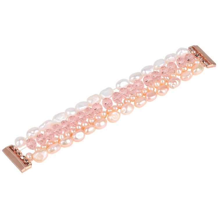 Gi din smartklokke et elegant og raffinert utseende med denne vakre klokkereimen dekorert med fire rader med krystaller og perler. Den glatte overflaten gir en behagelig bruksopplevelse og vil ikke skrape håndleddet eller irritere huden. En ideell erstatning for din gamle, slitte klokkereim.