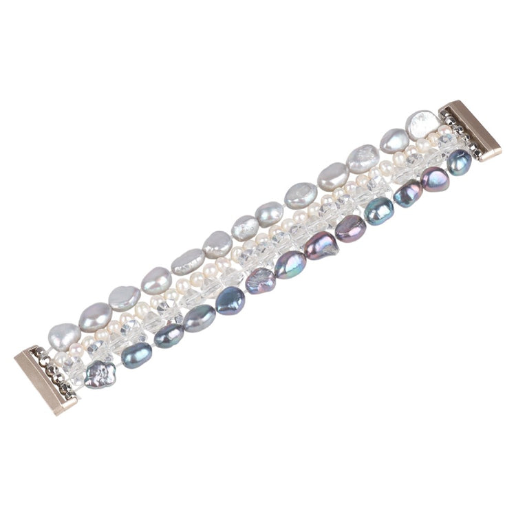 Dette stilige armbåndet for smartklokker har fire rader med krystaller og perler, som gir et delikat og vakkert utseende. Det har en glatt overflate som gir komfortabel bruk uten å ripe opp håndleddet eller skade huden. Et perfekt alternativ for å erstatte det gamle eller ødelagte armbåndet, enkelt å installere og fjerne.